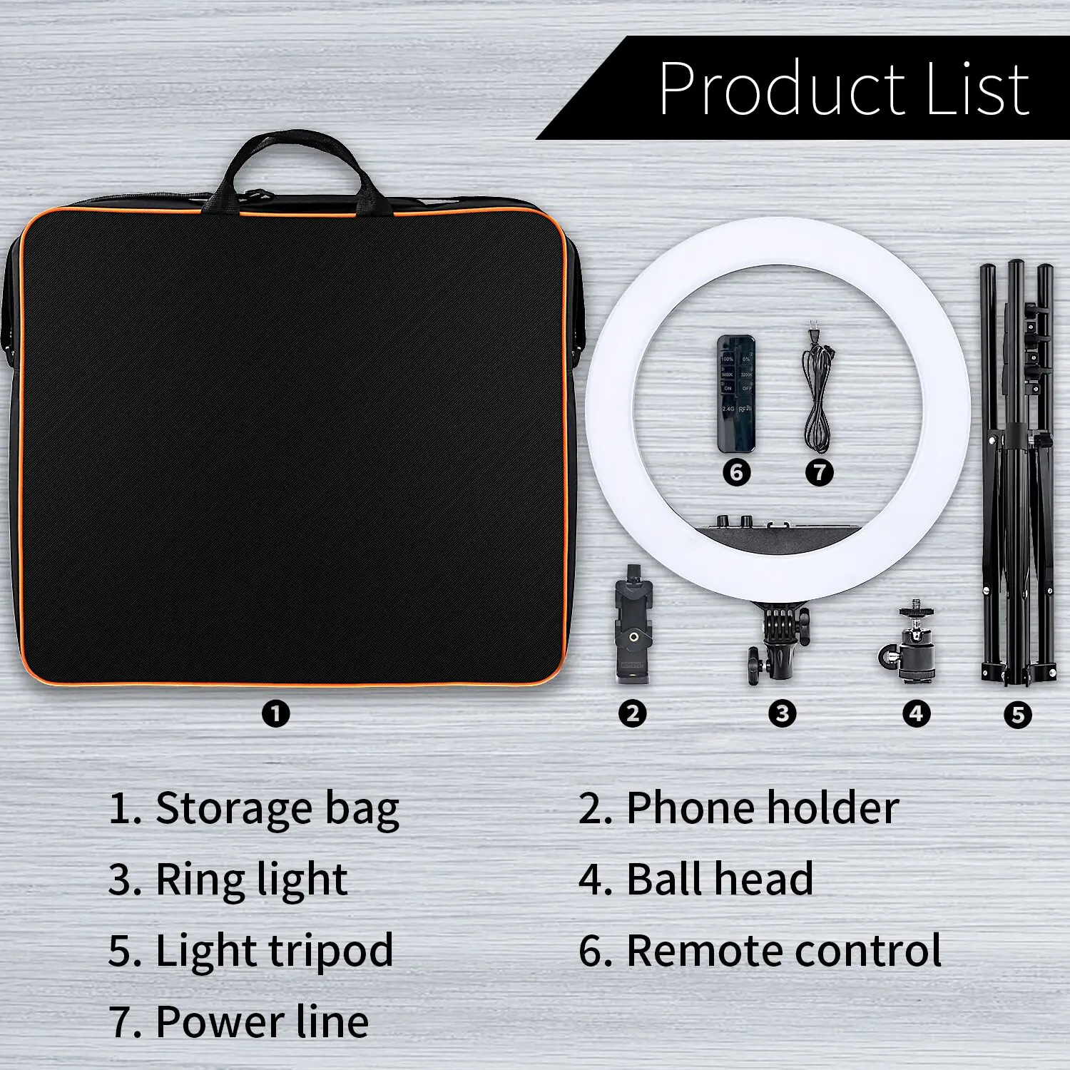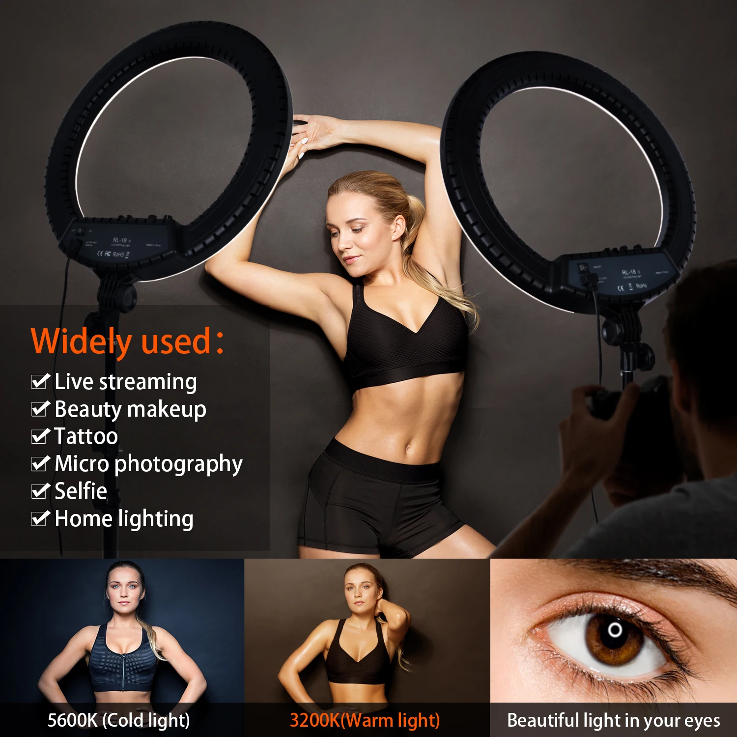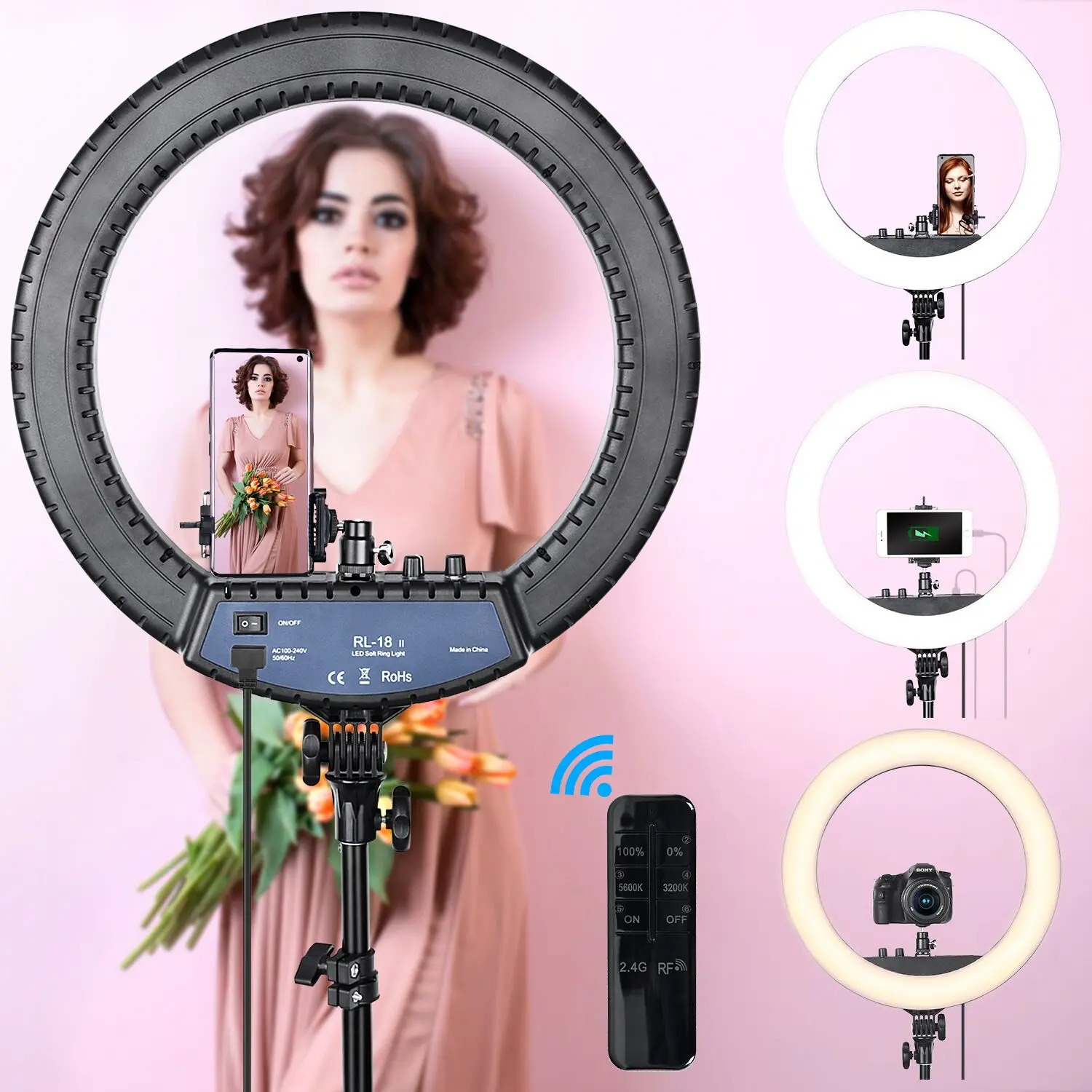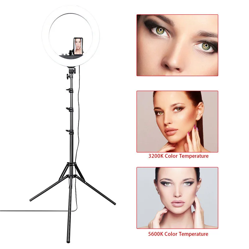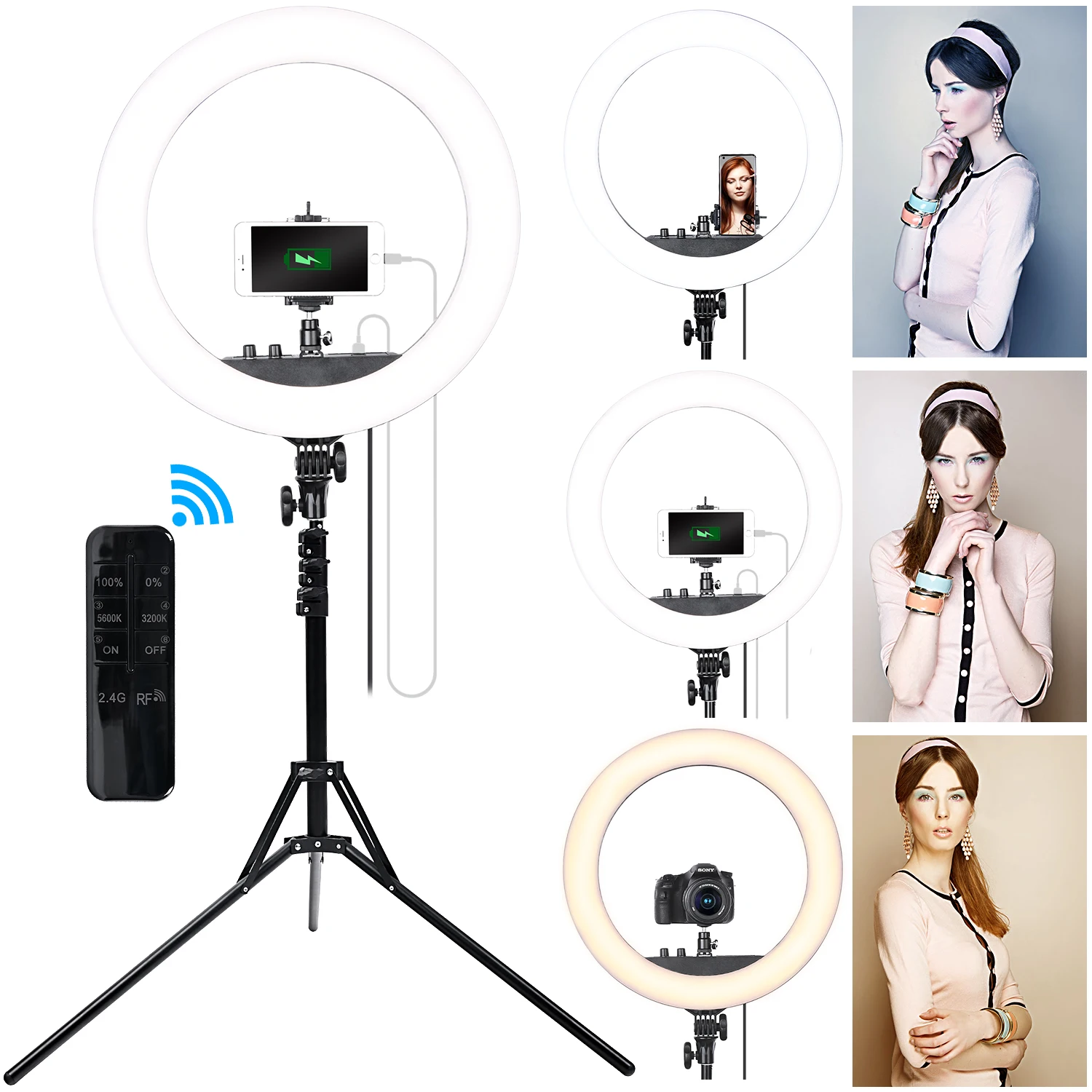 Светодиодная кольцесветильник лампа FOSOTO, 18 дюймов 55 Вт, кольцевая лампа для фотографии со штативом и пультом дистанционного управления через USB для телефона, макияжа, Youtube Tiktok