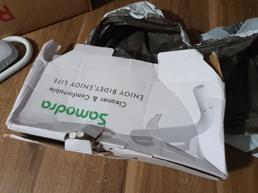 Упаковка при транспортировке была помята, внешний полиэтилен с ярлыками был с дарой. Целостность товара на первый взгляд не пострадала, хотя пластмас из которого сделано биде, кажется хрупким. Посмотрим что покажет эксплуатация.