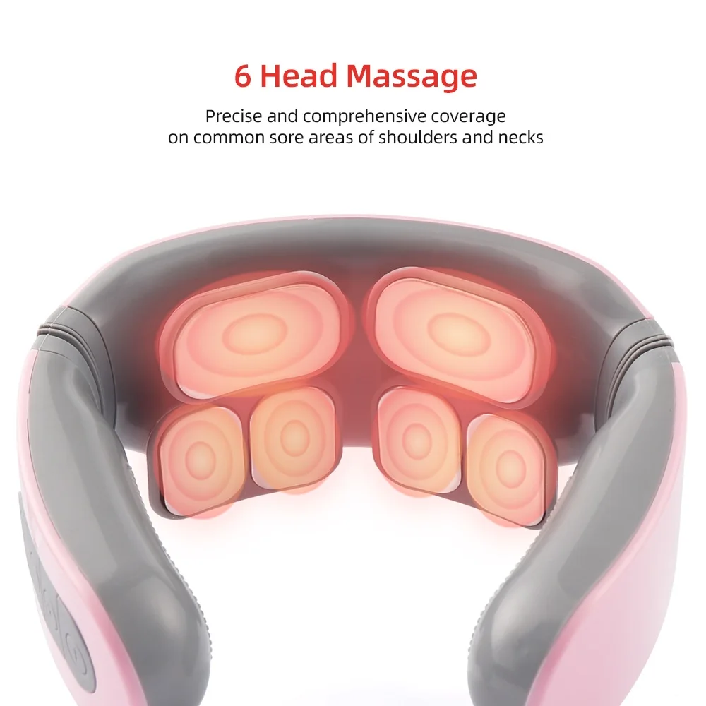 Умный массажер для шеи, 6 головок, 15 уровней, Электрический Импульсный беспроводной массажер для релаксации шеи, облегчения боли, ухода за здоровьем