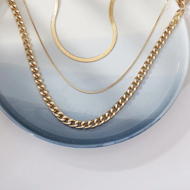Цепочка Женская многослойная под золото цветная змеиная цепь пробы, 2021