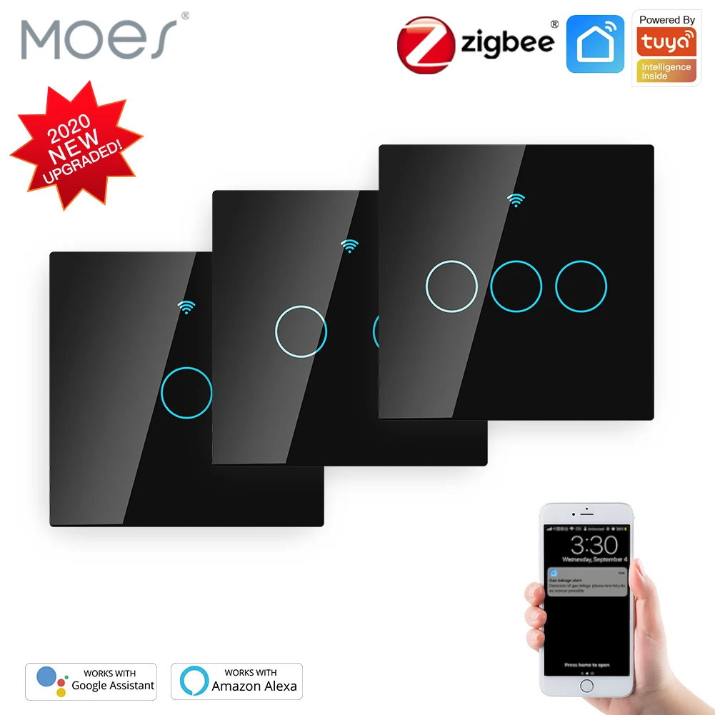 Настенный сенсорный смарт-светильник ZigBee с нейтральным проводом/без нейтрального провода, без конденсатора, необходимого для умного использования/Tuya 2/3 Way Muilti-Control Association дистанционное управление работает с Alexa, требуется домашний концентратор Google Изготовитель: Moes