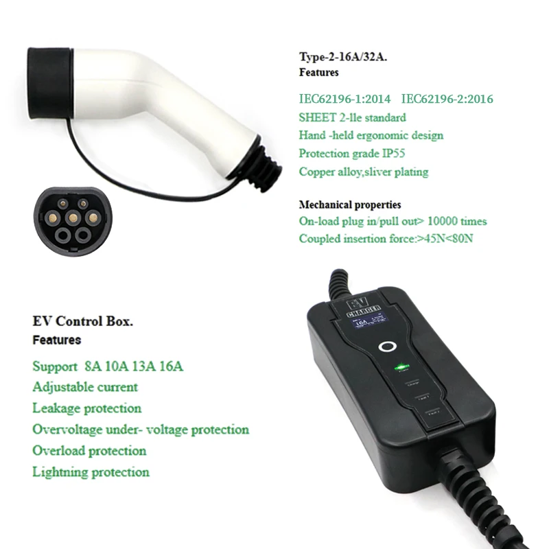 Портативное зарядное устройство для электромобилей типа 1, Тип 2, п...