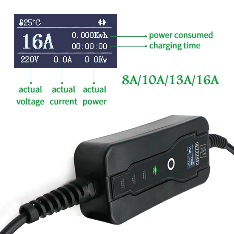 Портативное зарядное устройство 16 А SAE J1772 тип 1 EVSE EV, заряд...