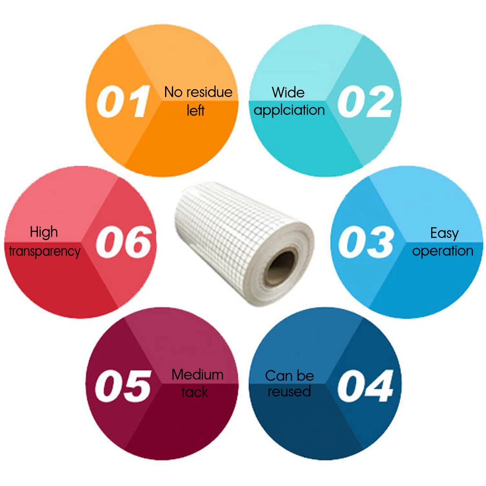Особенности: * 12 дюймов x 5 футов переводная лента для винила, можно разрезать на любой размер или форму, поместить ваш ремесленный проект на желаемую поверхность, а квадратная сетка легко выровняется по вашему дизайну. * Прозрачная виниловая переводная бумага подходит для всех видов клейкого винила (кроме блестящего винила или HTV). Идеально подходит для домашнего декора, вывесок и оконных наклеек. * Не слишком липкий, что вы не сможете перенести свой дизайн, но достаточно липкий, чтобы легко поднять свой проект и перенести его на поверхность, что не требует проблем и удобно для всех проектов. * Прозрачная пленка с выравнивающей сеткой для точного размещения, высококачественный клей с легкостью подхватит и отпустит вашу работу, не оставляя липкого следа, удобно для различных поделок. * Предназначен для работы с внутренними/наружными клейкими виниловыми аксессуарами. Хорошо подходит для камеи, силуэта, пазлов и многого другого. Эта переводная лента для винила легко переносится на любые гладкие поверхности, такие как наклейки со знаками, окна, стены, керамика, стекло и т. д. Спецификация: * Материал: ПВХ * Размер: 30,5x150 см/12 дюймов x 5 футов Посылка входит: * 1 рулон x переводная лента для винила Примечание: 1. Реальный цвет изделия может немного отличаться от изображения на сайте из-за многих факторов, таких как яркость вашего монитора и ярсветильник. 2. Пожалуйста, допускайте небольшое отклонение из-за ручного измерения для данных. Посылка входит: * 1 рулон x переводная лента для винила