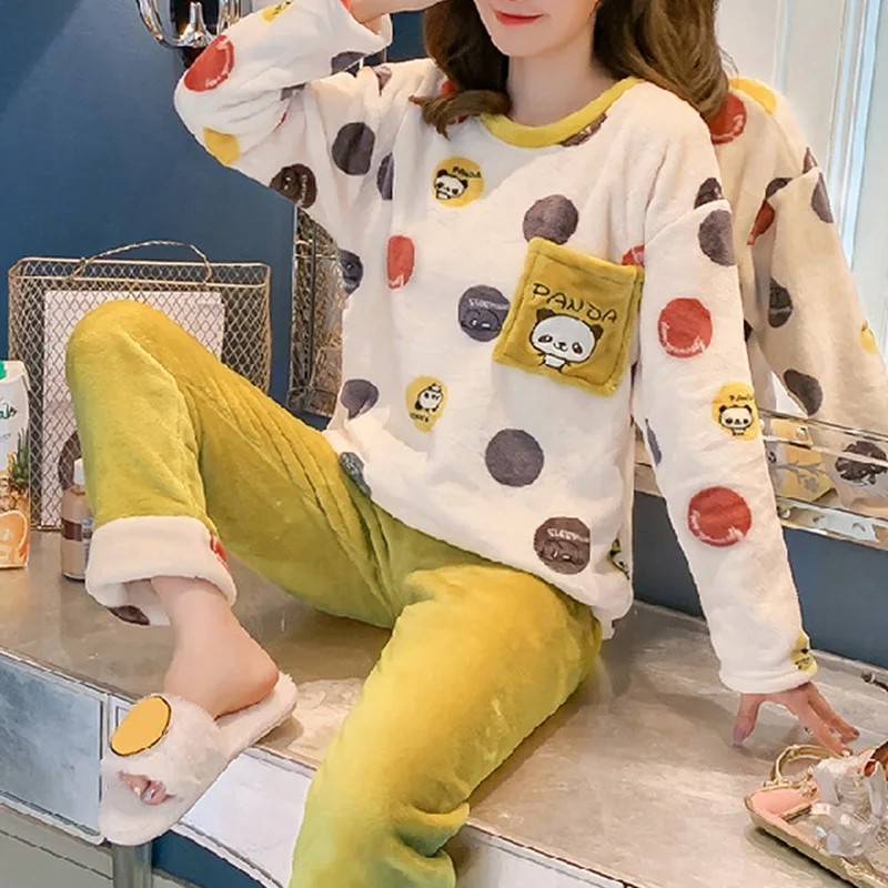 Пижама женская утепленная с длинным рукавом, коралловый бархат, тонкая Пижама с мультяшным рисунком, комплект для девушек, весна-зима 2021