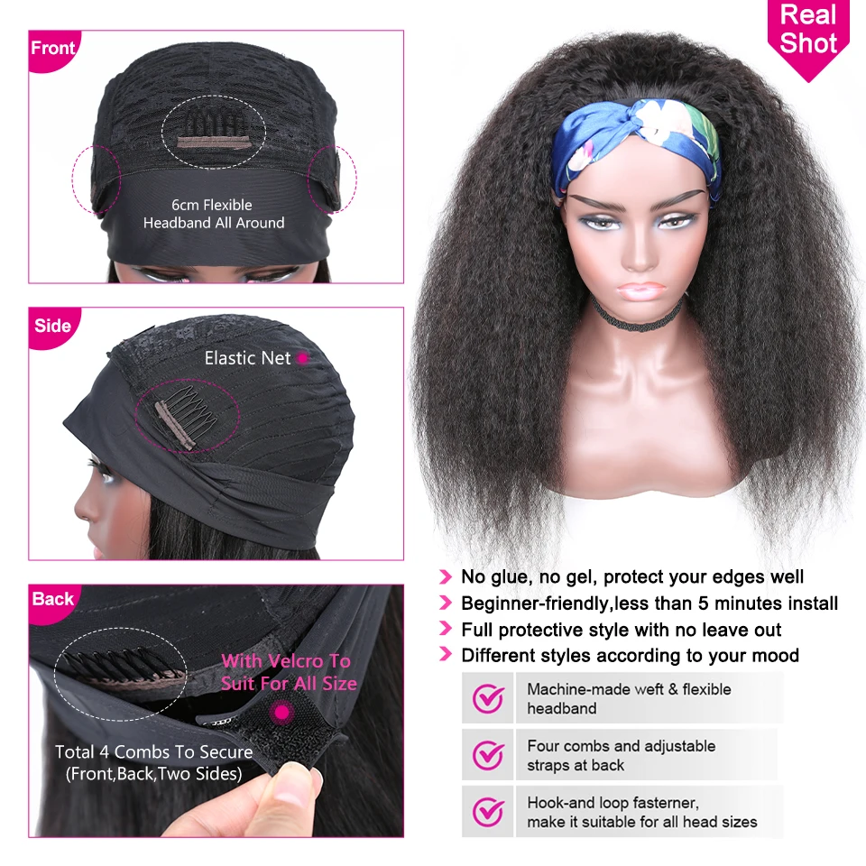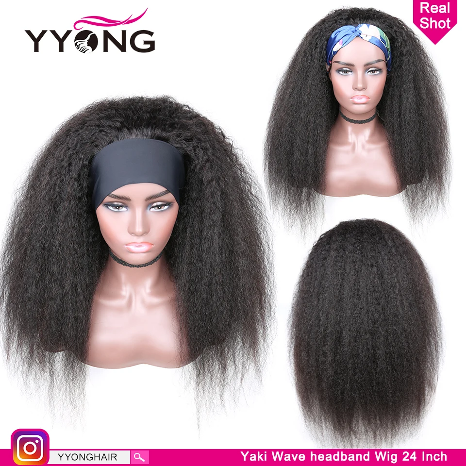 YYong Yaki прямая головная повязка парик из человеческих волос с шарфом курчавые прямые человеческие волосы парик для женщин Remy бразильские прямые волосы парик