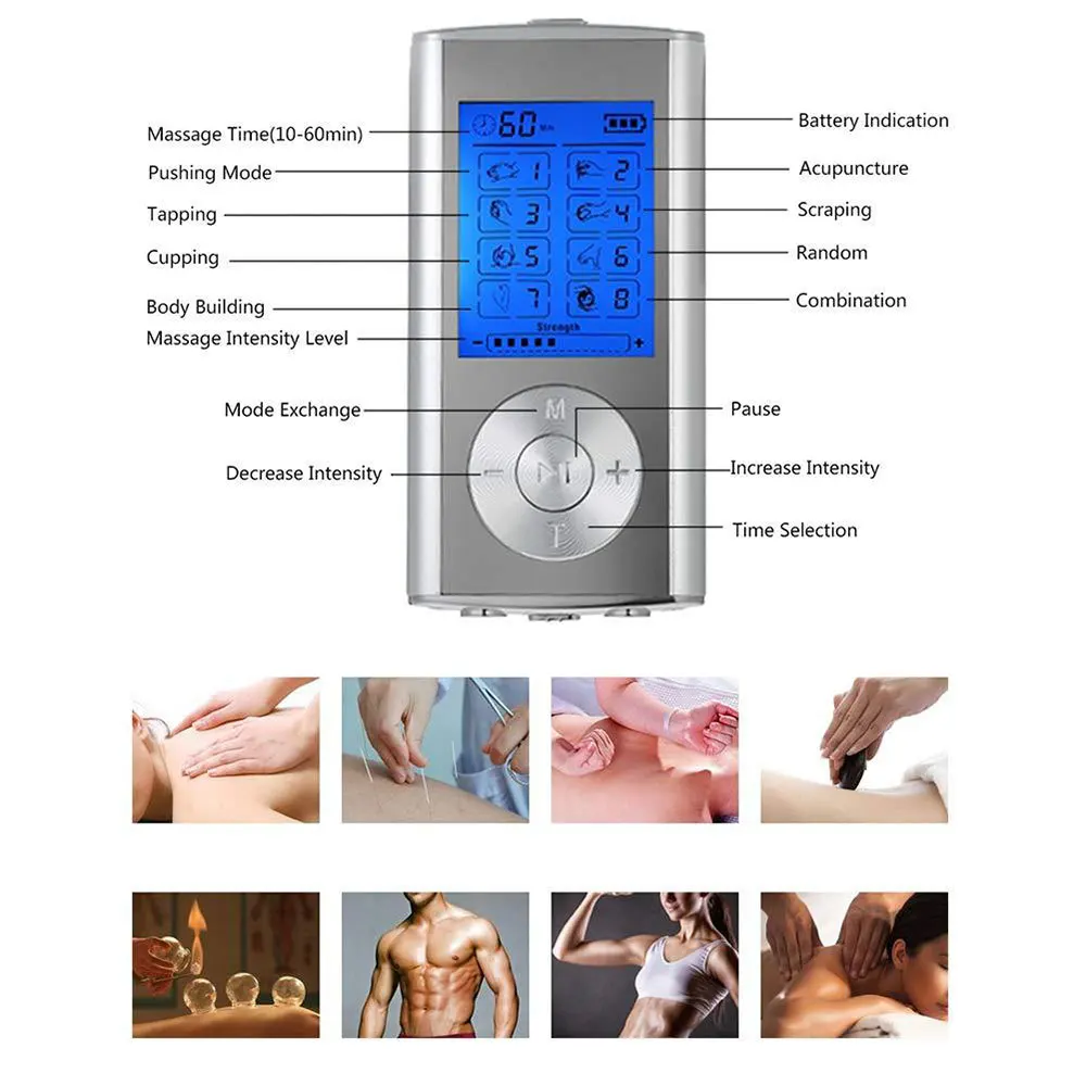 Эффективный: разработан в соответствии с бионикой, электронной биологией, физикой, китайской меридианной наукой и сотрудничает с современной микро-электронной технологией. Он может стимулировать сочувствующий нерв и мышцы, активировать механизм естественных болевых ворот для снятия мышечного напряжения, расслабить ваше тело и управлять болью в любое время.