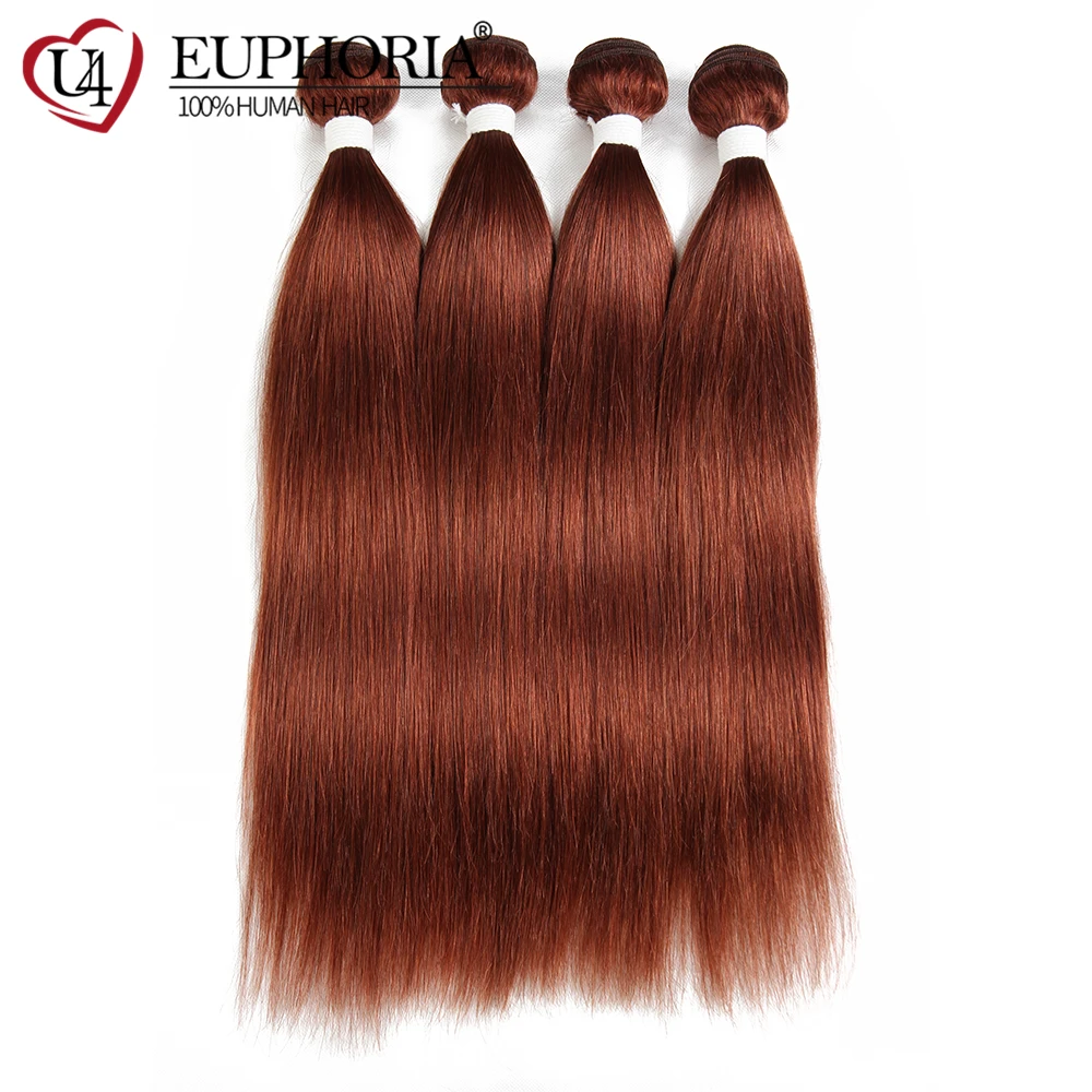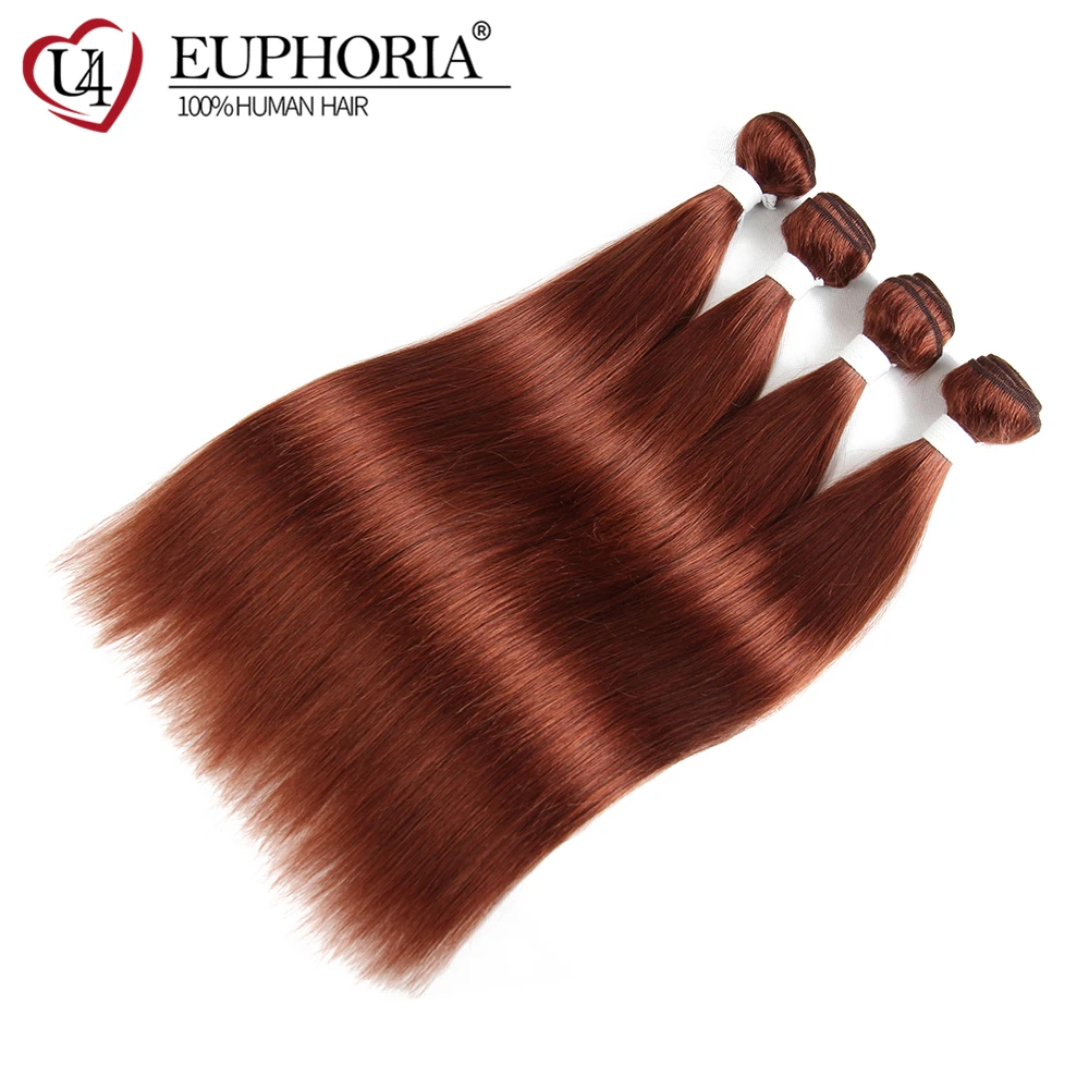 Прямые пряди для волос 134 шт дело темно-коричневый 33 бордовый цвет бразильские 9A человеческие пряди для наращивания ткачество 8-26Euphoria