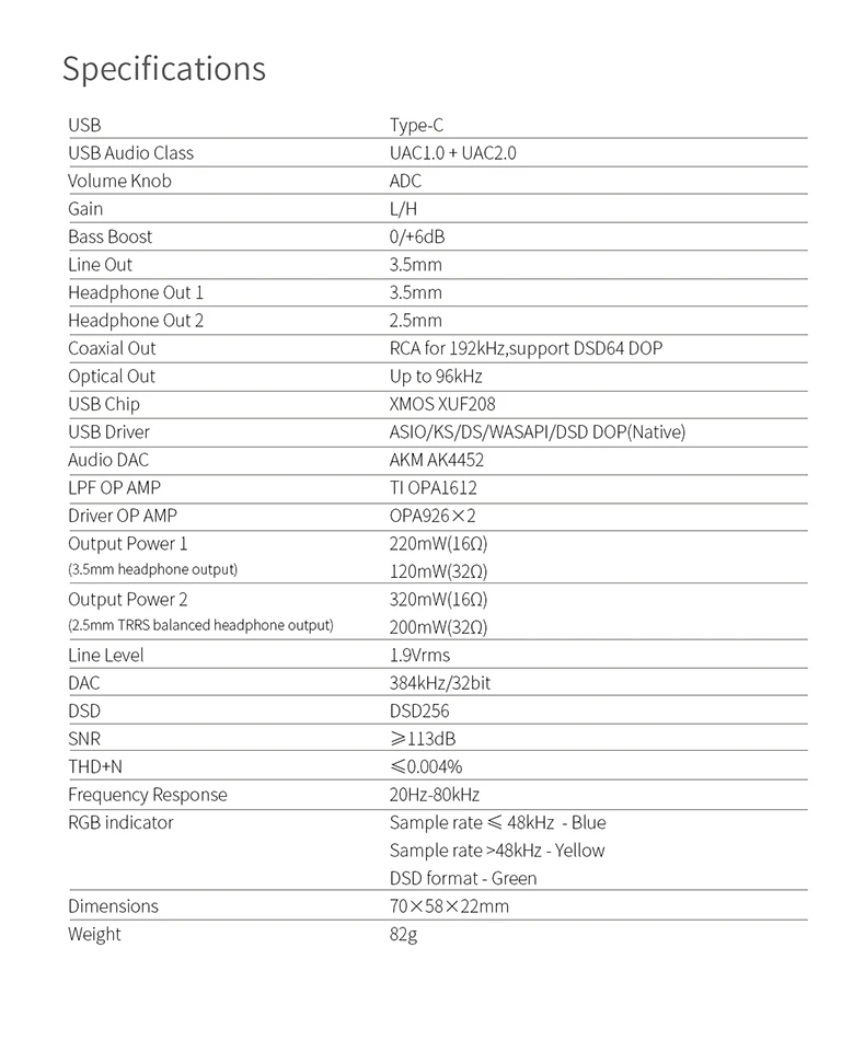 Pocket-sized Power FlexibilityHeadphone усилитель & USB-C DACCoaxial и оптический цифровой outs2 USB аудио modesPCM384k/DSD256 decodingDual headphone выходы двойной цифровой аудио outputsADC регулятор громкости