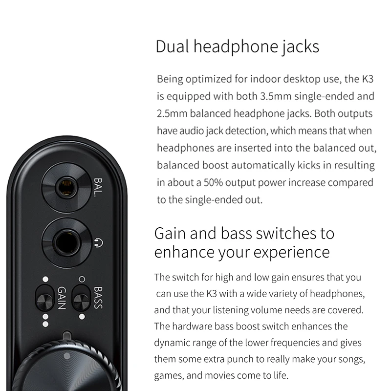 Headphone Out3.5mm single-ended output / 2.5mm TRRS balanced output