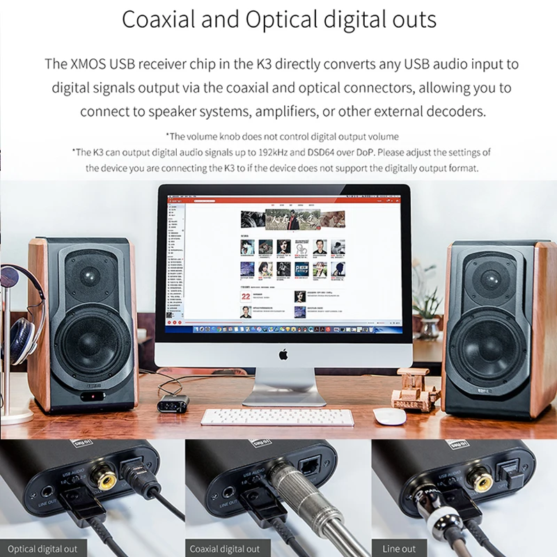 Coaxial OutRCA for 192kHz, support DSD64 DOP