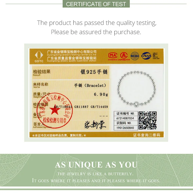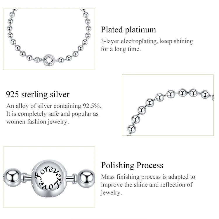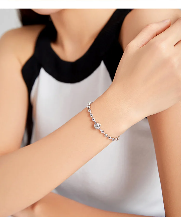 Женский браслет-цепочка из настоящего серебра 925 пробы с бусинами, Свадебный оригинальный браслет, аутентичное ювелирное изделие, CQB208