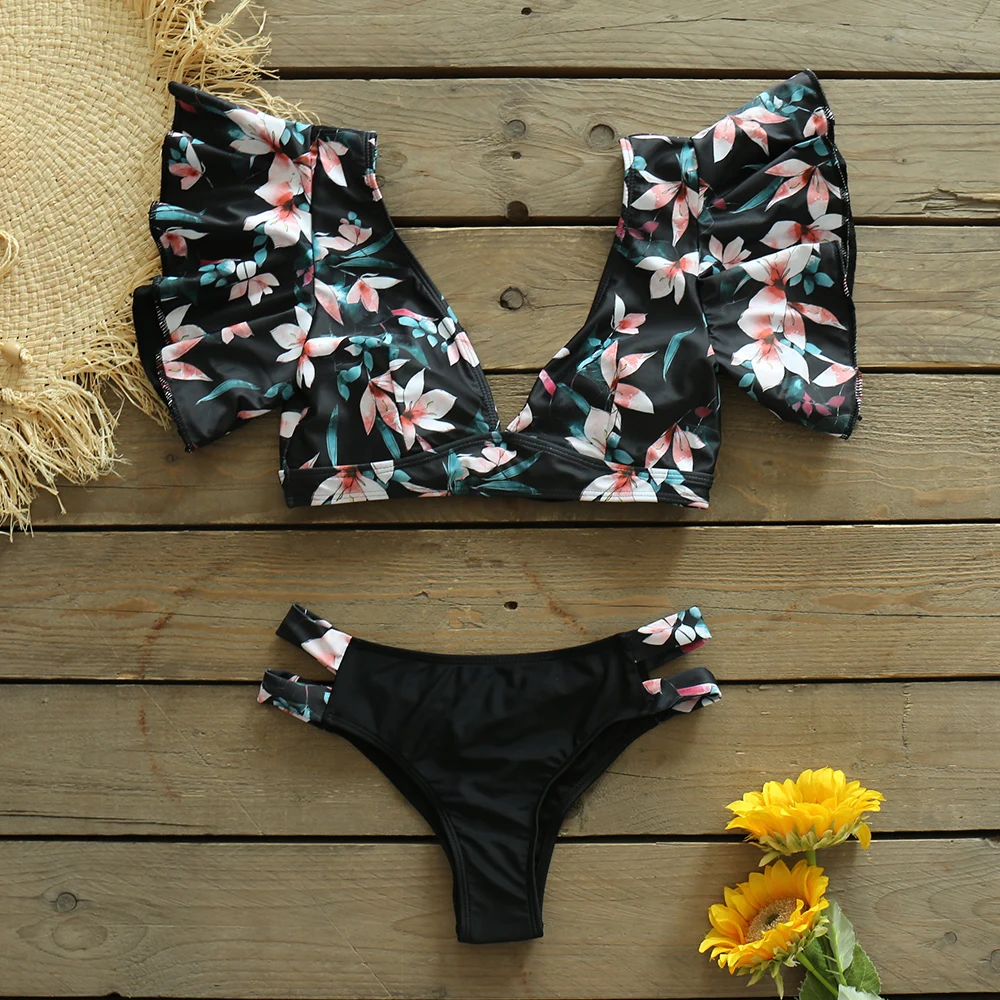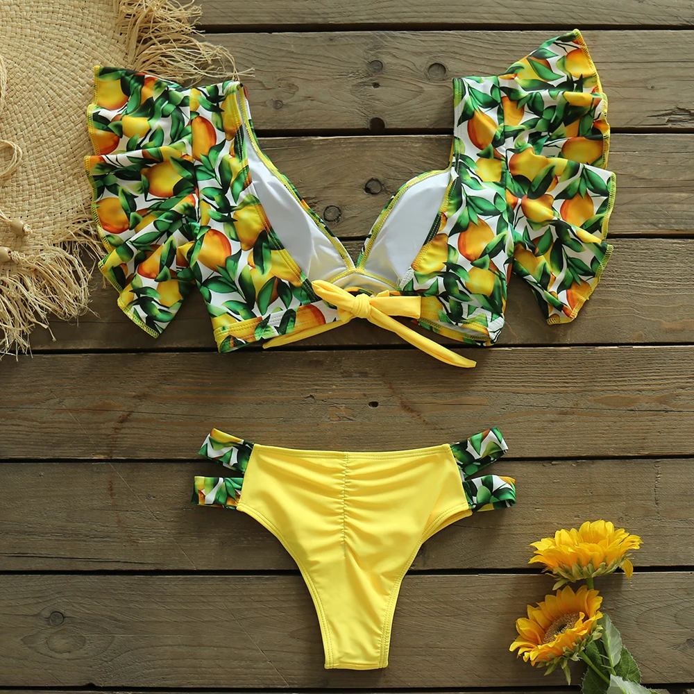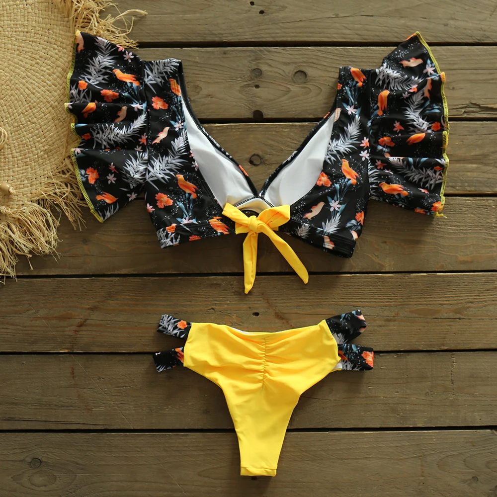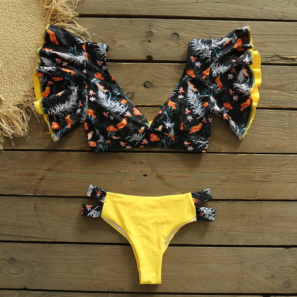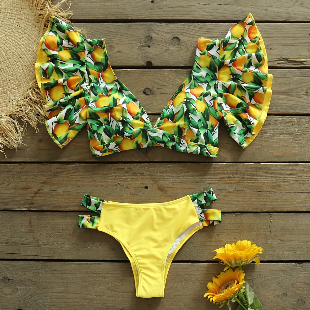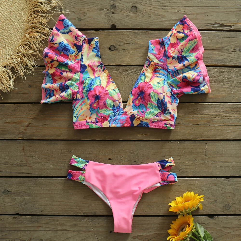 2020 новый сексуальный бразильский комплект бикини, женский купальник с оборками, женский купальник с цветочным принтом и пуш-ап, купальный костюм, бикини