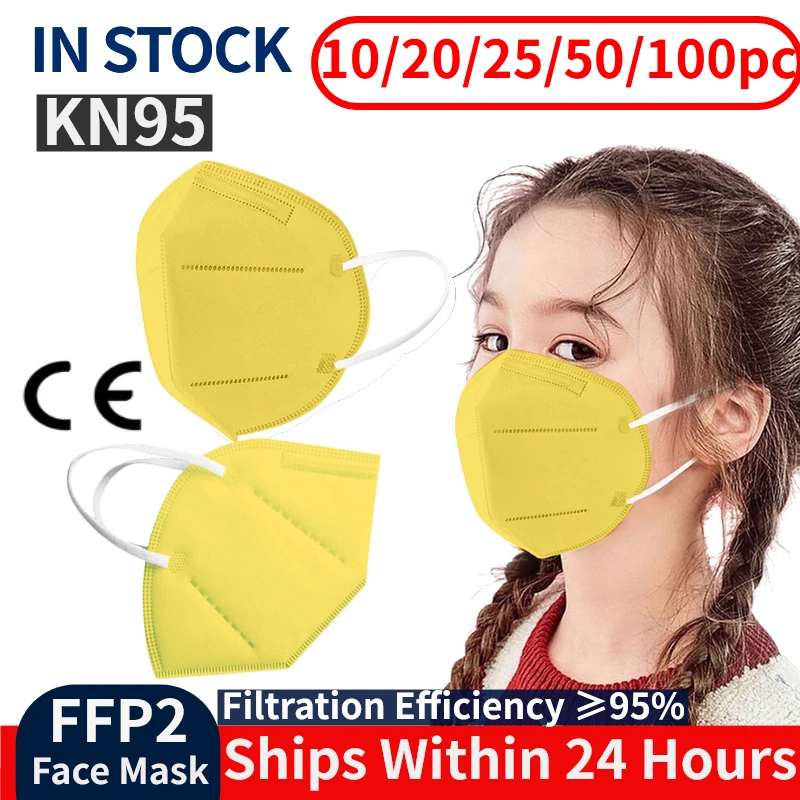 10202550100 шт. детская маска для лица KN95 FFP2 маска для рта желтая защитная маска 95% фильтрация пыли anit CE pm2.5 маски