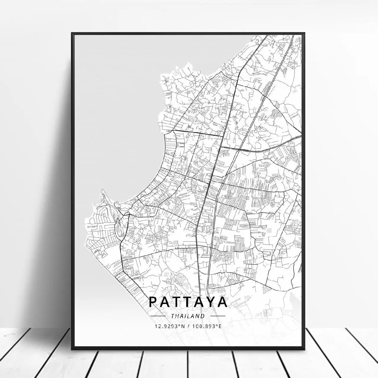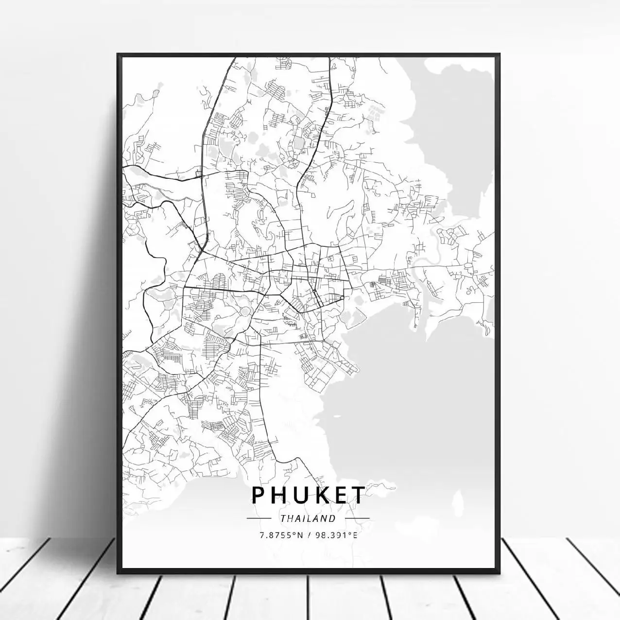 Hd Печать Муэн нахон Шон бёрл Бангкок Паттайя Чиангмай удон Тани Пхукет Тайланд холст карта Плакат рамка
