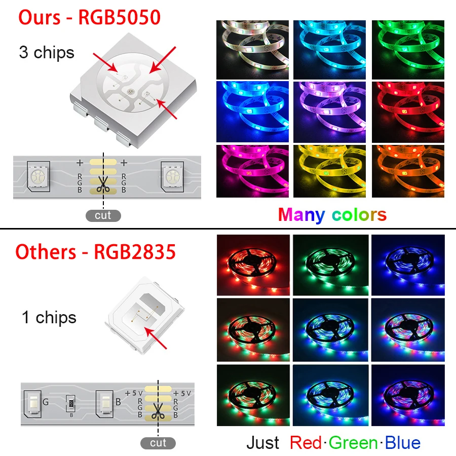 Наш светильник использует RGB5050 Ламповые бусины. В отличие от обычных RGB2835, RGB5050 может синтезировать любой цвет, включая белый