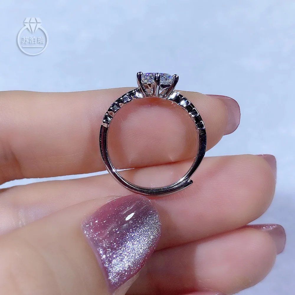 Кольца из 100% настоящего муассанита, регулируемое кольцо с бриллиа...