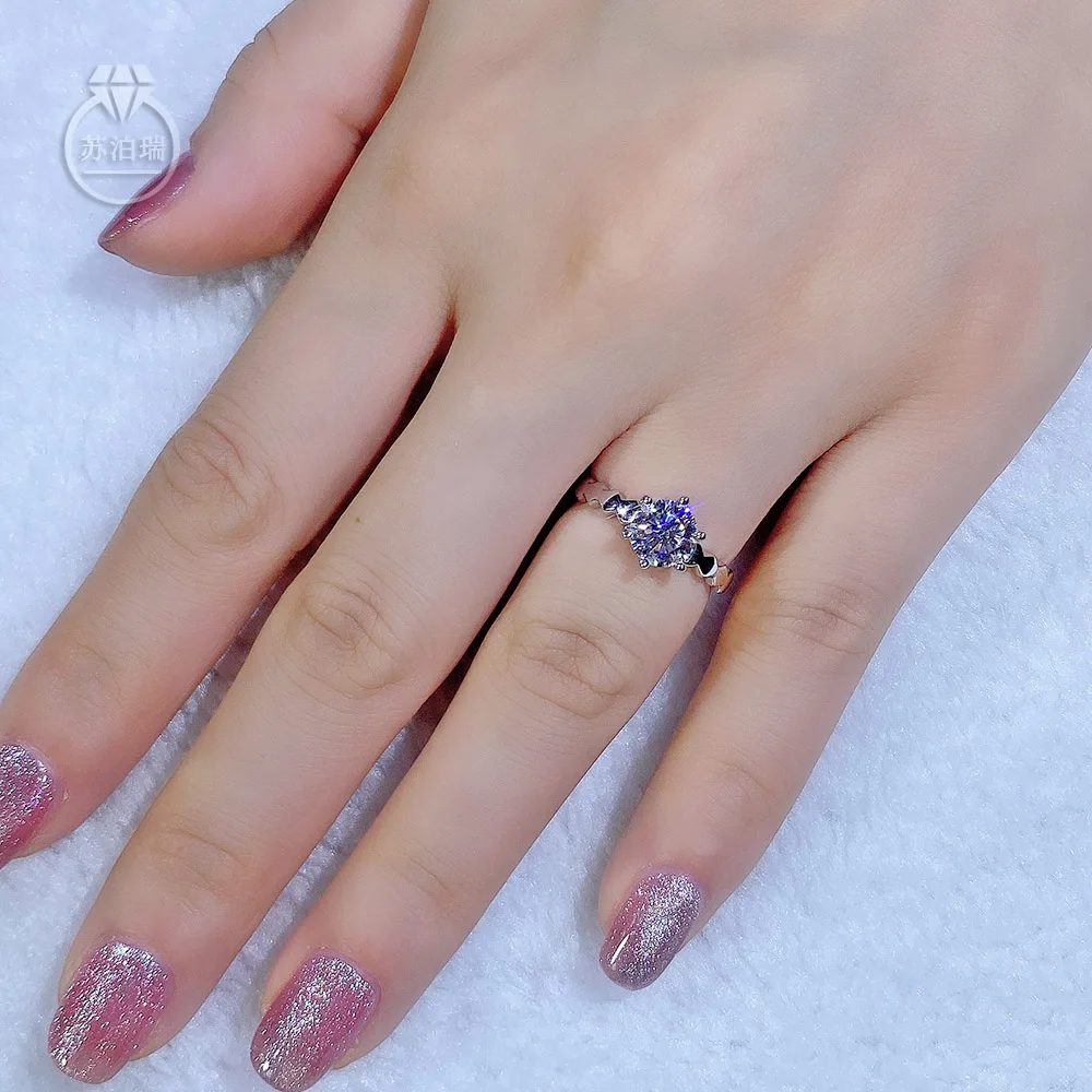1-2 карат муассанит Кольца цвет D VVS синий розовый желтый зеленый ...