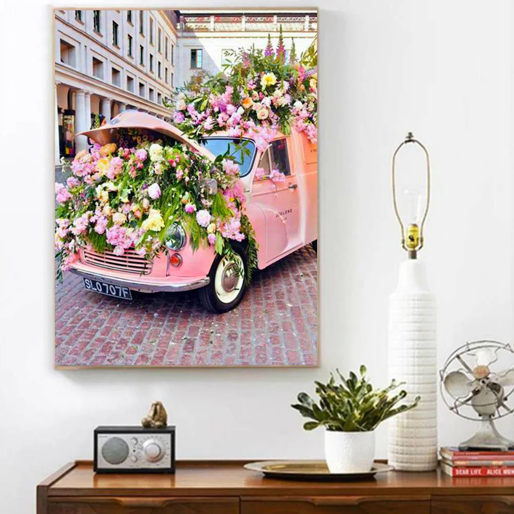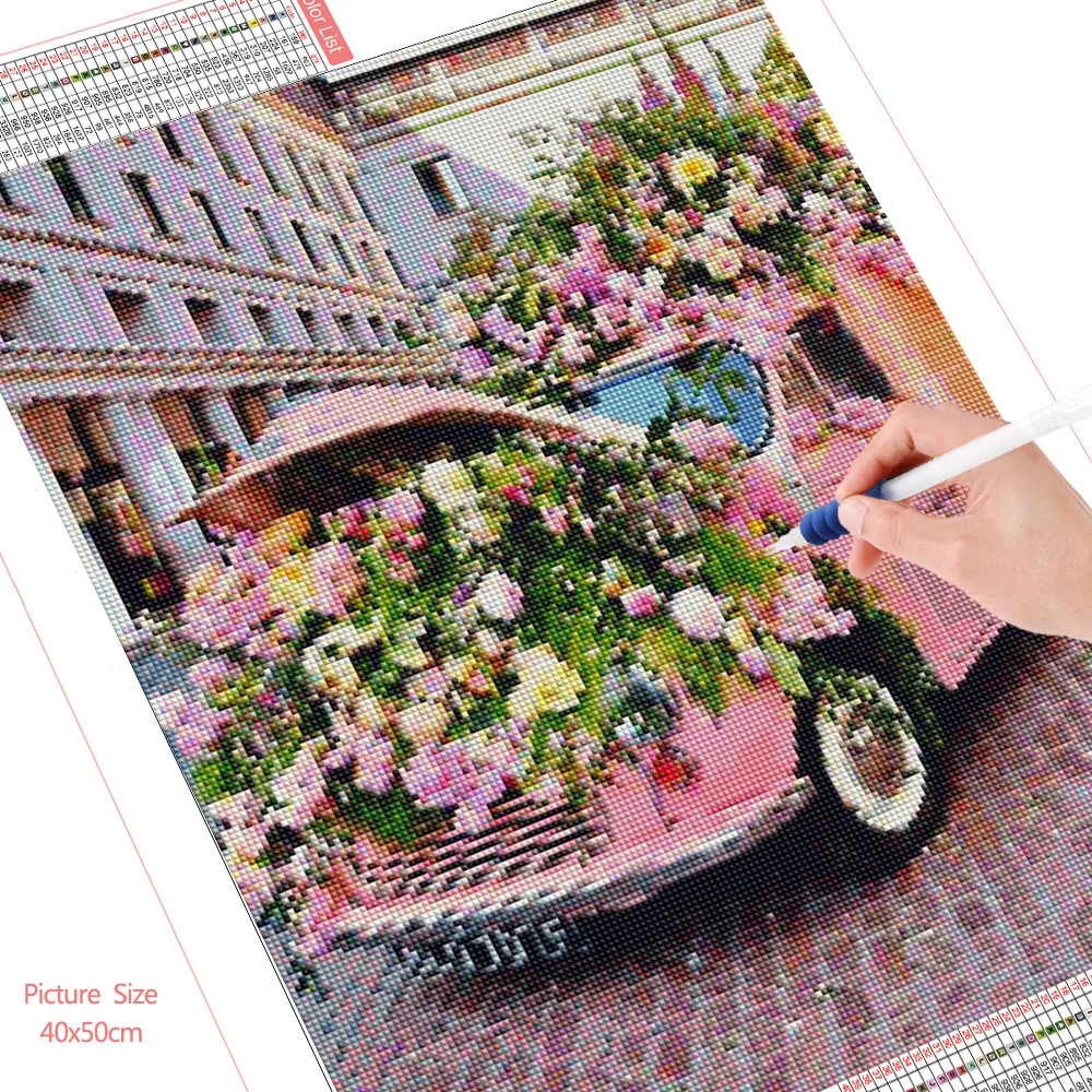 Алмазная вышивка 5D сделай сам HUACAN, картина с цветами, автомобиль, вышивка крестиком, Алмазная мозаика, велосипед, Украшение стен ручной работы