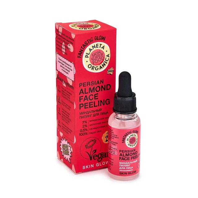 Всего несколько минут на то, чтобы сделать кожу чистой, молодой и сказочно красивой! Этот ароматный пилинг на основе миндальной кислоты создан для домашнего ухода. Мгновенно придает коже естественное сияние и отдохнувший вид. Миндальная кислота способствует выработке коллагена, кожа становится гладкой и бархатистой. Обладает антисептическим действием, эффективно очищает и обновляет кожу, придавая тонус и сияние. Молочная кислота глубоко увлажняет и омолаживает кожу. Вспомните легенду о молочных ваннах Клеопатры — секрет молодости и красоты ее кожи. Салициловая кислота очищает поры и сокращает черные точки. Кожа преображается и выглядит, как никогда раньше свежей, сияющей и шелковистой. Способ применения: нанесите пилинг на чистую сухую кожу, избегая области вокруг глаз, оставьте на 3-5 минут. Тщательно смойте водой. Рекомендуем использовать «Тоник для лица нейтрализатор пилинга» и «Крем для лица после пилинга» коллекции SKIN SUPER FOOD. Использовать 1-2 раза в неделю. Меры предосторожности: перед использованием проверьте на небольшом участке кожи на отсутствие аллергии. Может возникнуть незначительное покалывание и покраснение кожи. Состав: Aqua with infusions of Prunus Spinosa Fruit Extract (экстракт дикой сливы), Nigella Sativa Seed Extract (экстракт черного тмина) and Hibiscus Sabdariffa Flower Extract (органический экстракт гибискуса), Mandelic Acid (миндальная кислота), Lactic Acid (молочная кислота), Salicylic Acid (салициловая кислота), Prunus Amygdalus Dulcis Fruit Water (миндальное молочко), Cocos Nucifera Fruit Juice (кокосовая вода), Hydroxypropyl Starch Phosphate (натуральный загуститель на основе крахмала), Panthenol (провитамин В5), Rosa Damascena Flower Oil (эфирное масло розы дамасской), Sodium Hydroxide (гидроксид натрия), Benzoic Acid (пищевой консервант из ягод брусники), Sorbic Acid (пищевой консервант из ягод клюквы).