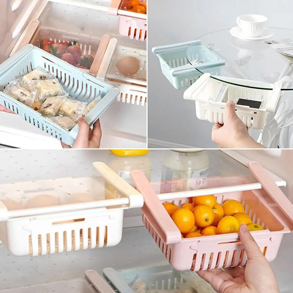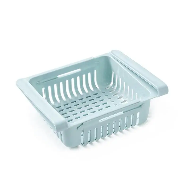 Регулируемая синяя пластиковая корзина для хранения в холодильнике, полка-держатель для морозильной камеры, ванной комнаты, детской кухни E5E1