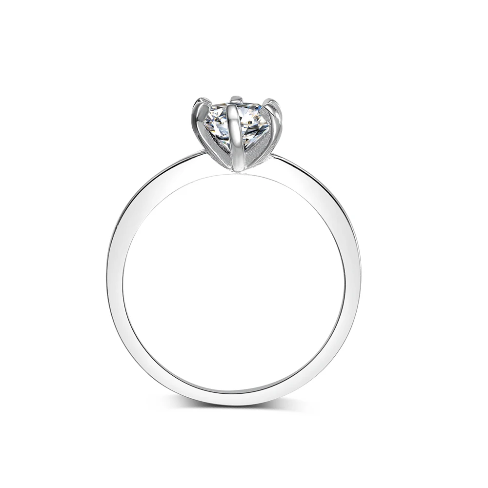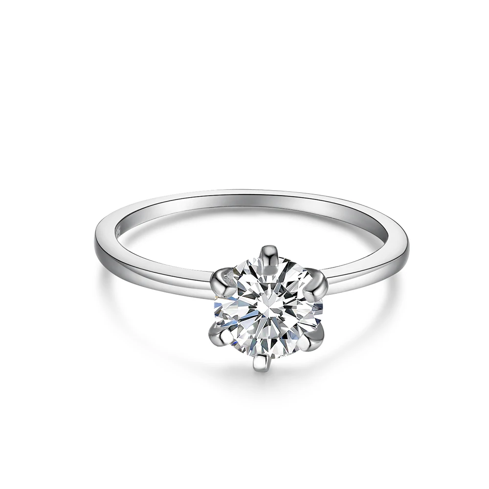 Женское Обручальное Кольцо Classic Petite Moissanite, однотонное кольцо из белого золота 14 к с центральным круглым покрытием, ювелирные изделия из моиссанита, свадебные кольца
