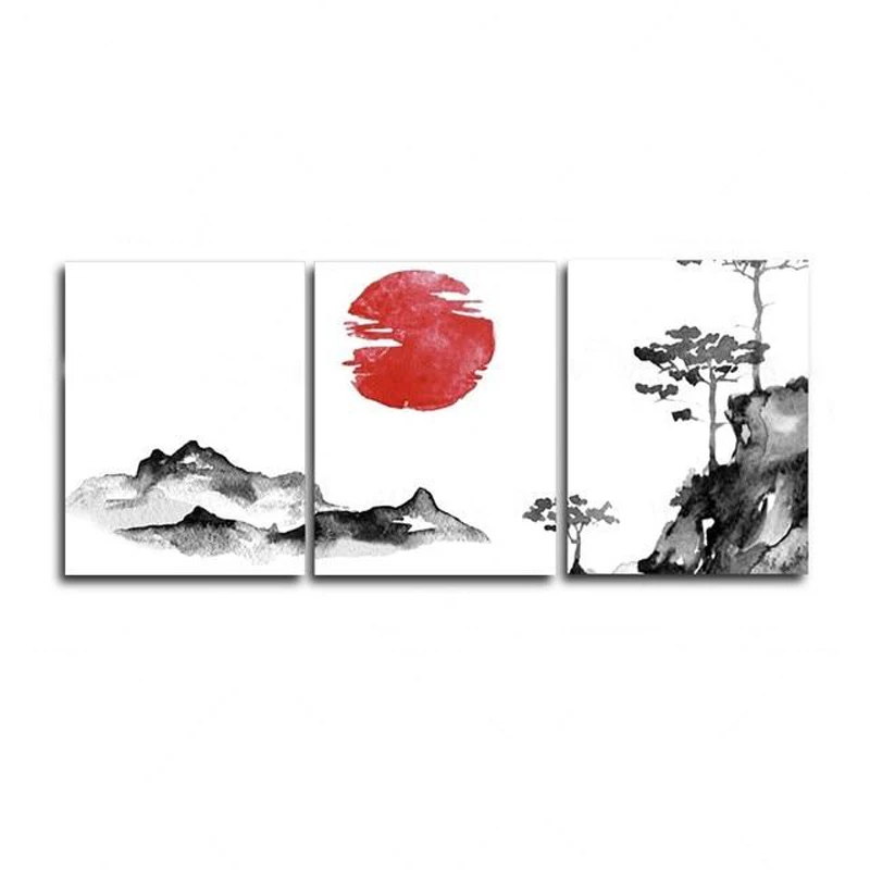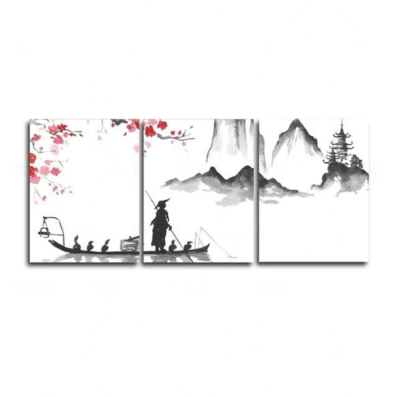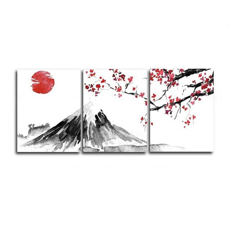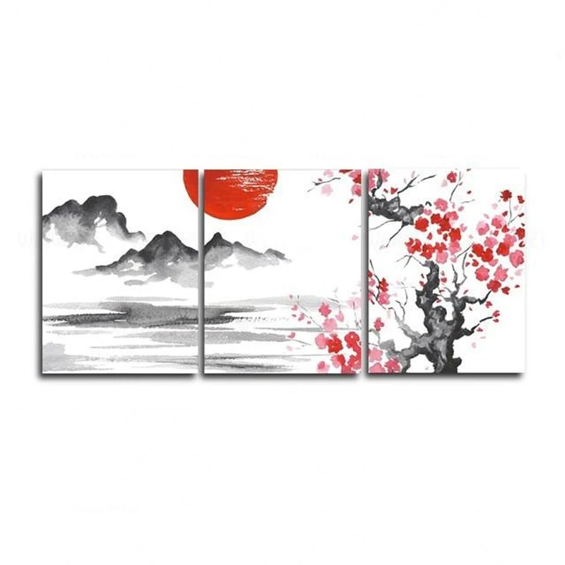 3 Panel Chinese Style Plum Landscape Posters