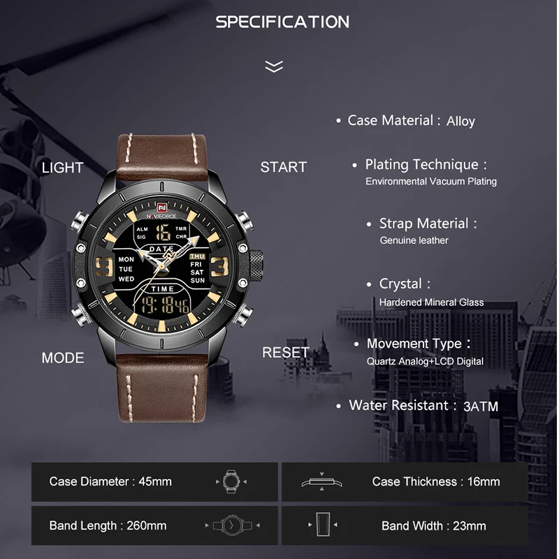 Мужские часы NAVIFORCE Топ люксовый бренд кожа водонепроницаемые спортивные мужские часы кварцевые аналоговые часы мужской набор для продажи