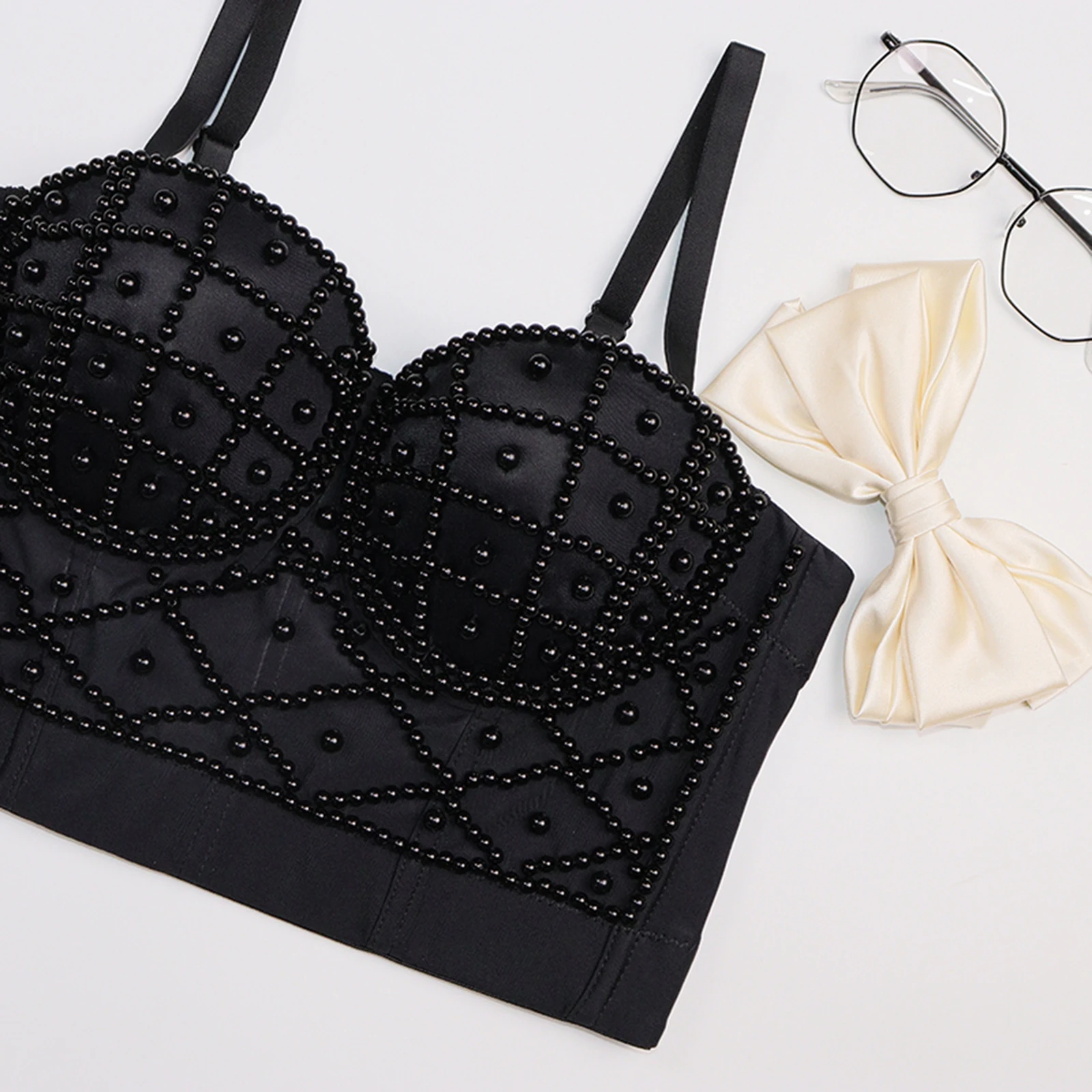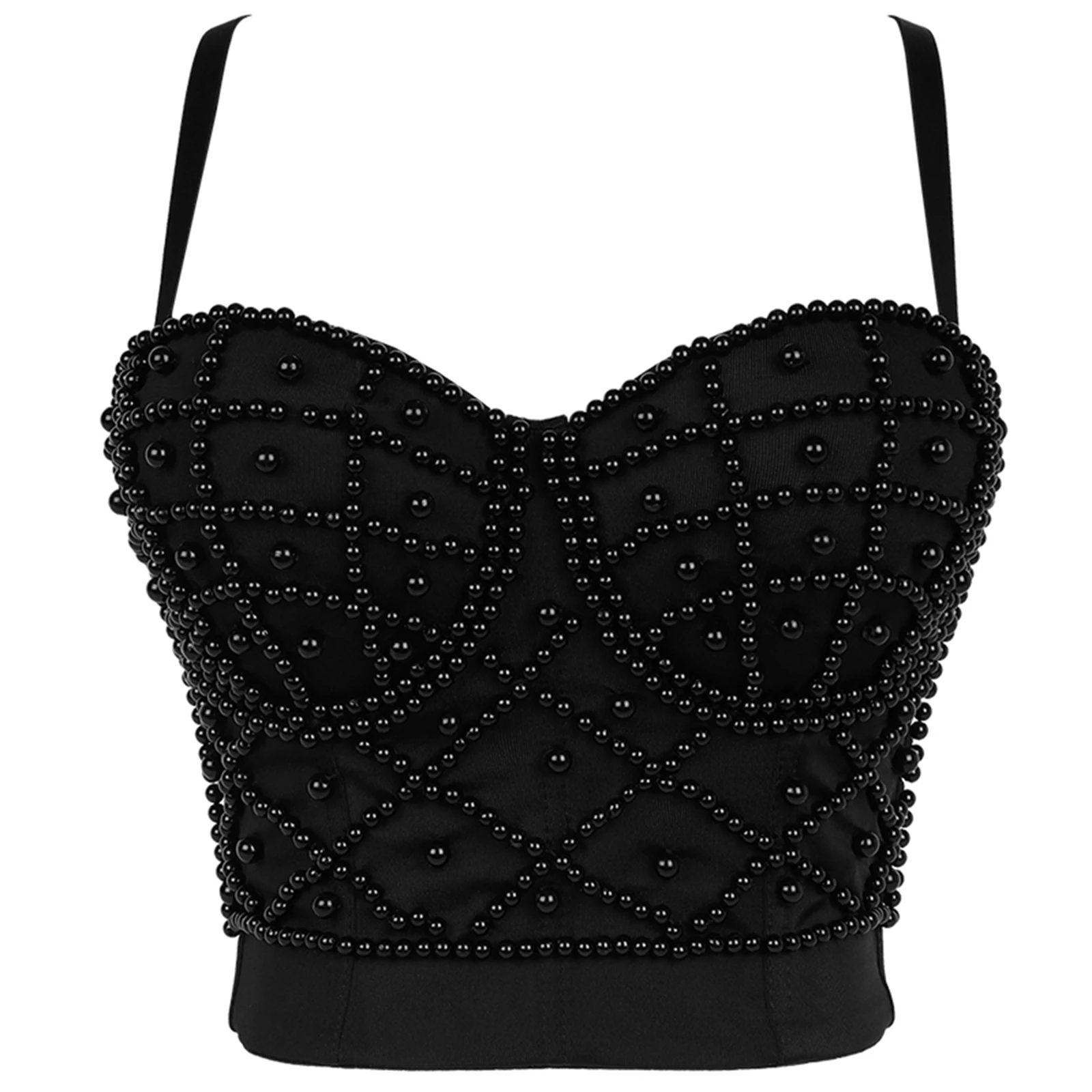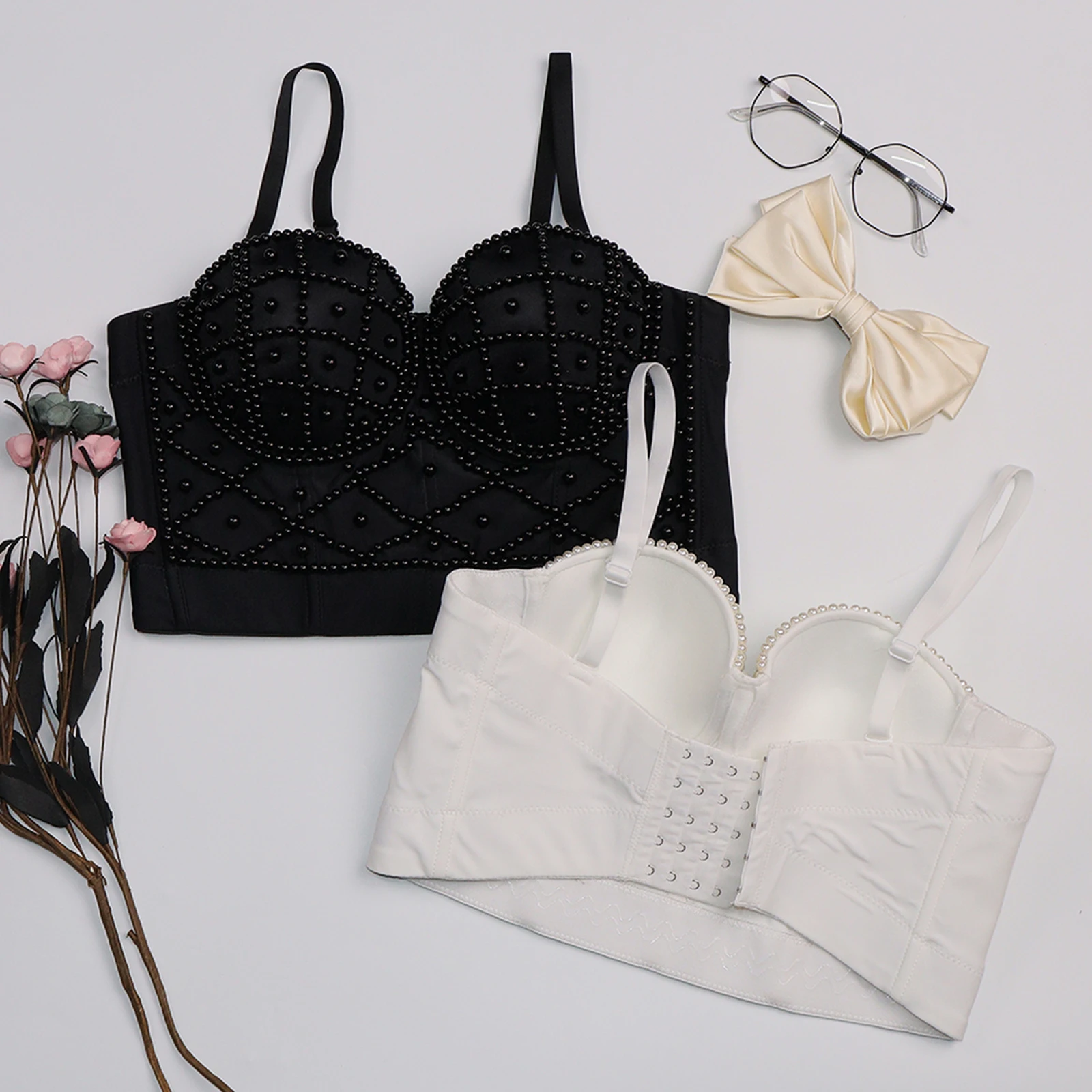 Новинка 2021, женский топ на бретелях с регулируемыми бусинами, жилет с бусинами, Женский Мягкий Бюстье с чашками пуш-ап, клубная одежда