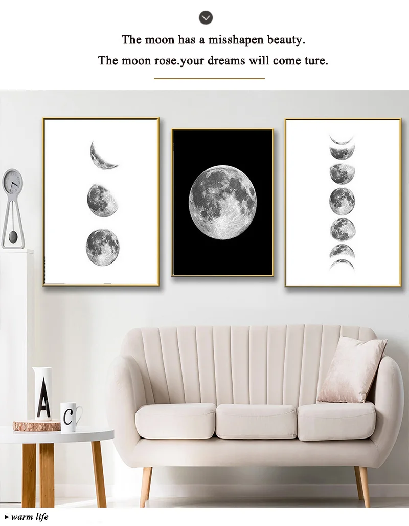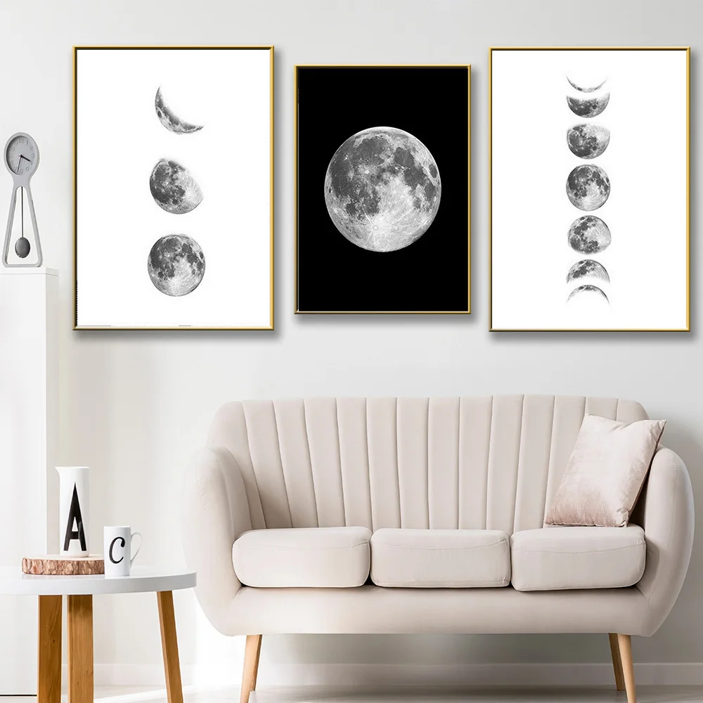 Настенное искусство Луна черно-белая Реалистичная пейзаж Картина домашний Декор постер печать Скандинавская Картина на холсте гостиная Bedoom
