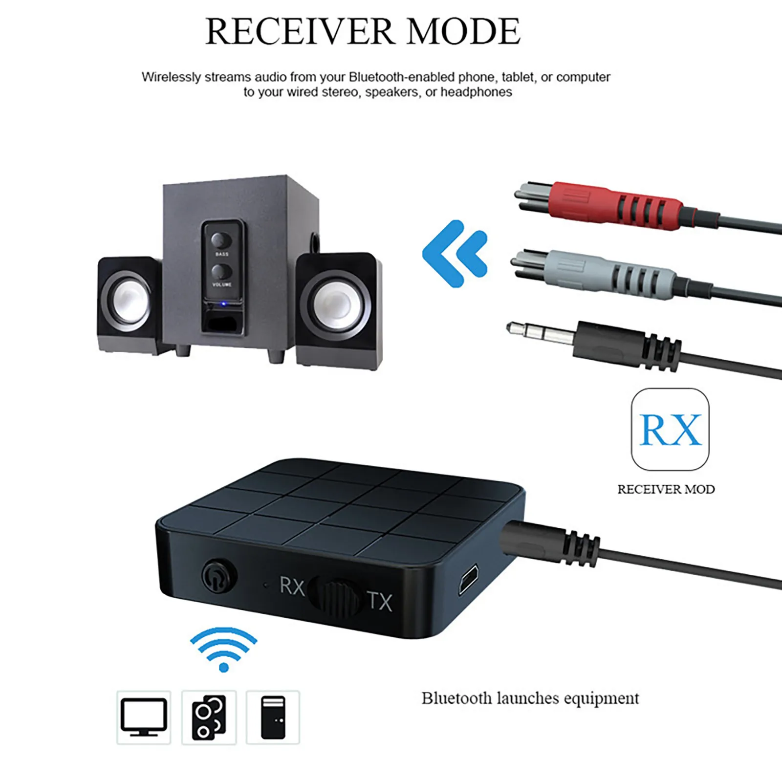 ШирокийСовместимость: с помощью прилагаемого 3,5 мм кабель и 3,5 мм до 2RCA кабель, этоАдаптер передатчика приемника может широко использоваться на вашем компьютере, ноутбуке,Домашняя стереосистема, наушники, смартфон, mp3-плеер, плеер и т. Д.