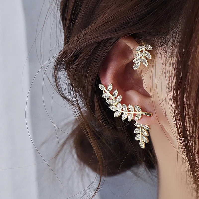 1 шт. Роскошные серьги-гвоздики с фианитами в виде листьев для женщин в японском и корейском стиле новый стиль 14 К позолоченные серьги
