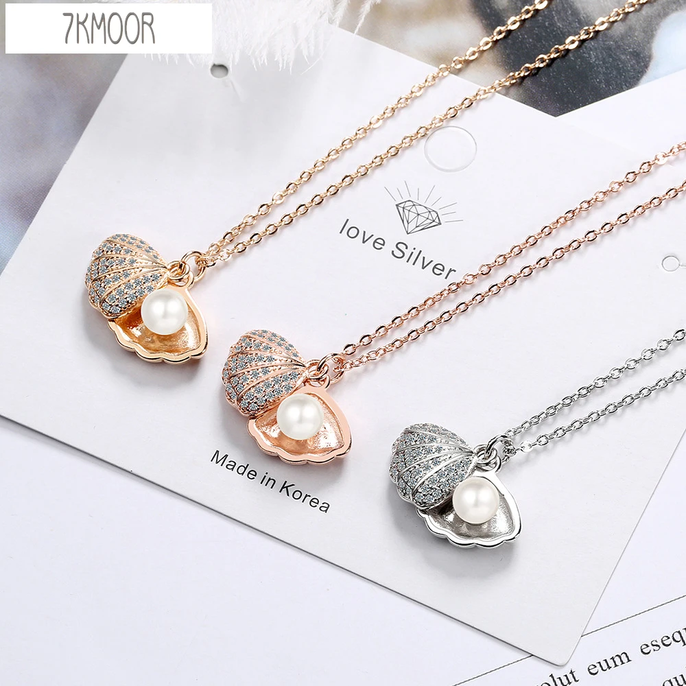 Женское Ожерелье из настоящего серебра 925 пробы с чокер с жемчугом подвеской из циркония 7KMOOR, Изящные Ювелирные изделия, милые аксессуары 2021