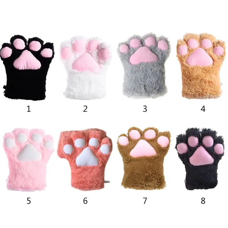 Женские милые перчатки-лапки Зимние теплые плюшевые рукавицы для косплея аниме