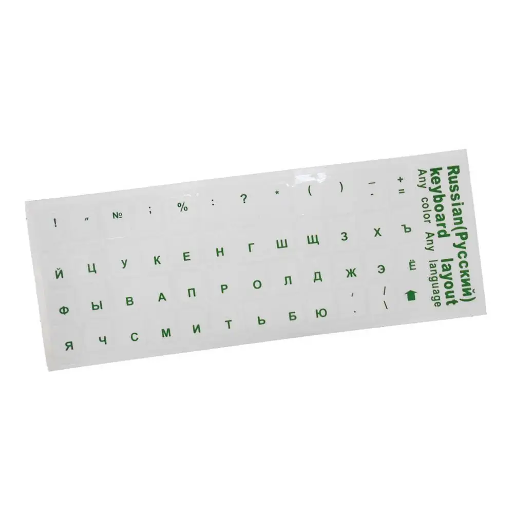 Прозрачная Русская клавиатура для ноутбука, наклейка, русские буквы, наклейка, пленка со светлой цветной буквой, раскладка клавиатуры, обложки, пленка Характеристики: Русский Стандарт наклейки на клавиатуру подходят для настольных компьютеров и ноутбуков. Уникальное покрытие защищает от истирания, долговечности. Легко наносится и снимается. Тип: наклейка на клавиатуру Материал: ПВХ Особенности: Русская раскладка, сменная, легко наносится Размер: 18 см x 6,5 см/7,09 "x 2,56" (прибл.) Примечания: Из-за разницы в освещении и настройках экрана цвет изделия может немного отличаться от изображения. Возможны незначительные отклонения в размерах из-за различных измерений вручную. Посылка включает в себя: 1 x наклейка на клавиатуру