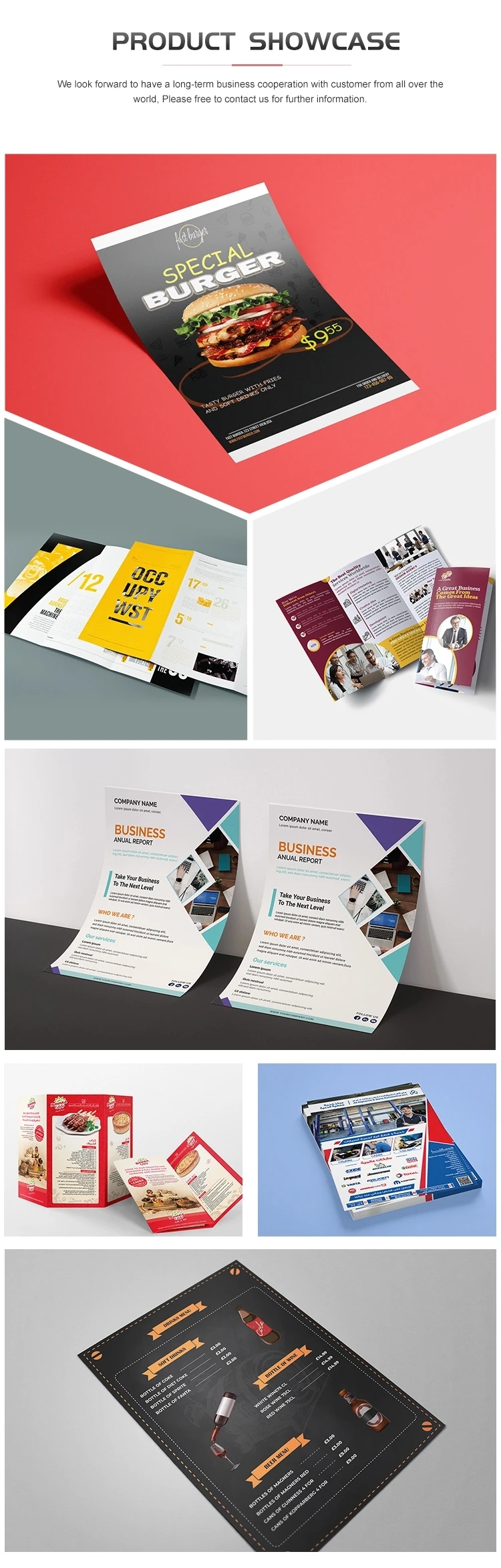 1. Материал: 128 г или 157 г или 200 г или 250 г бумага с покрытием Вы можете связаться с нами, если вы хотите использовать другую весовую бумагу 2. Самая быстрая доставка-5 дней.