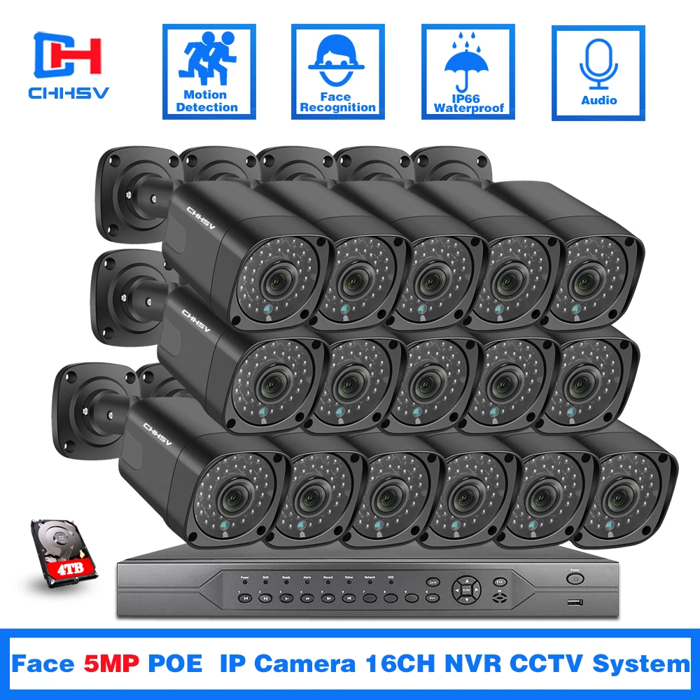 CHHSV H.265 аудио 4K 5MP H.265 16CH CCTV безопасности NVR комплект 5MP наружная водонепроницаемая IP камера POE безопасности видеонаблюдения набор