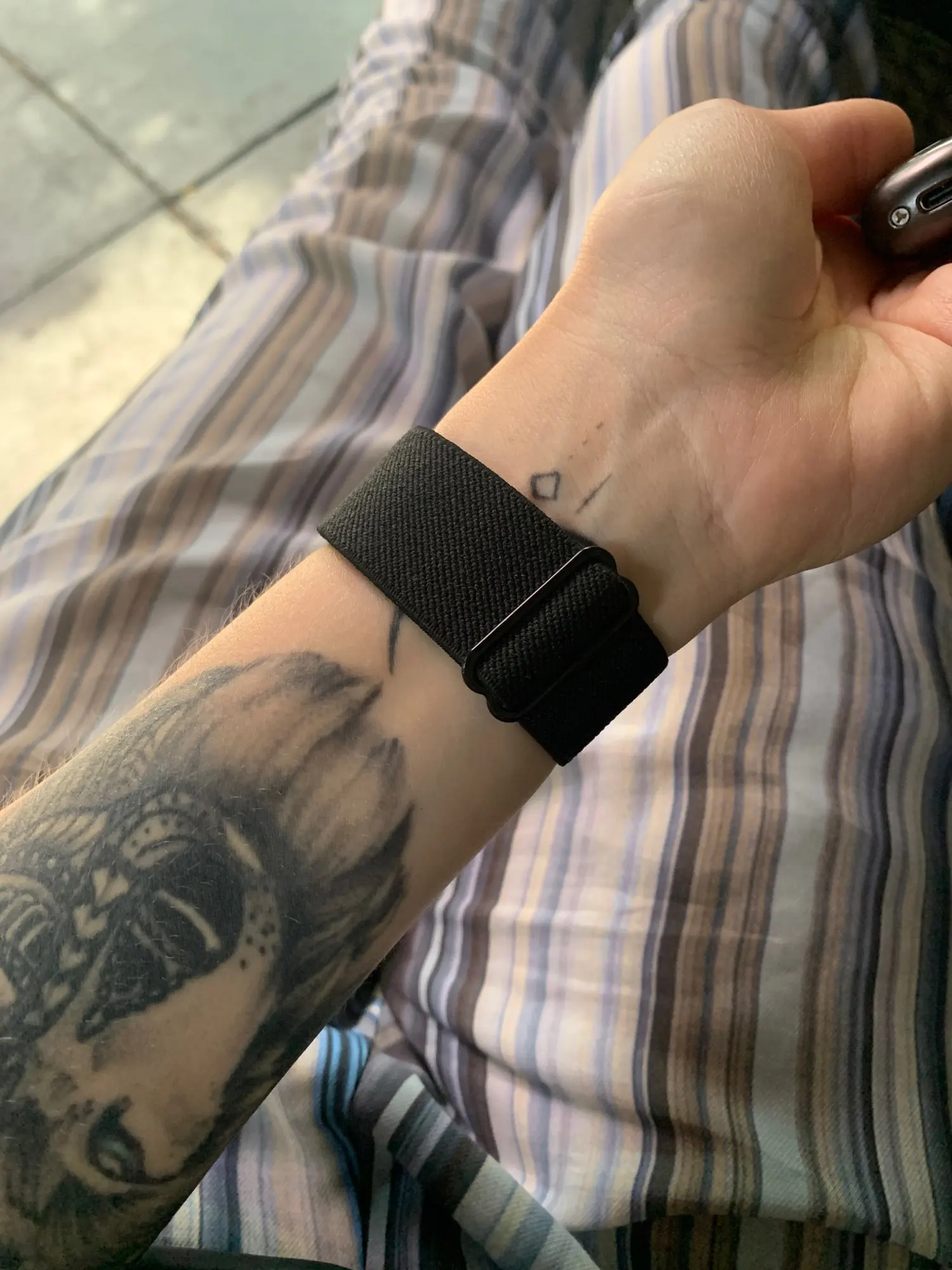 Хороший ремешок, но если рука тонкая, а кисть большая, надевать и снимать будет тяжело. Довольно туго тянется. И не очень сильно.