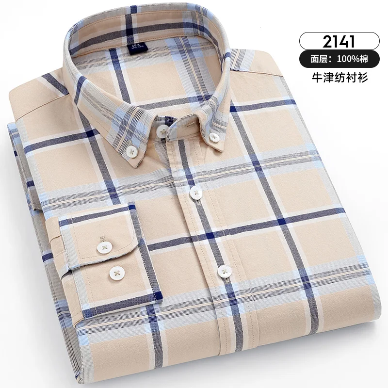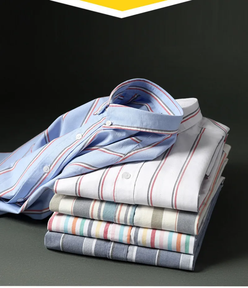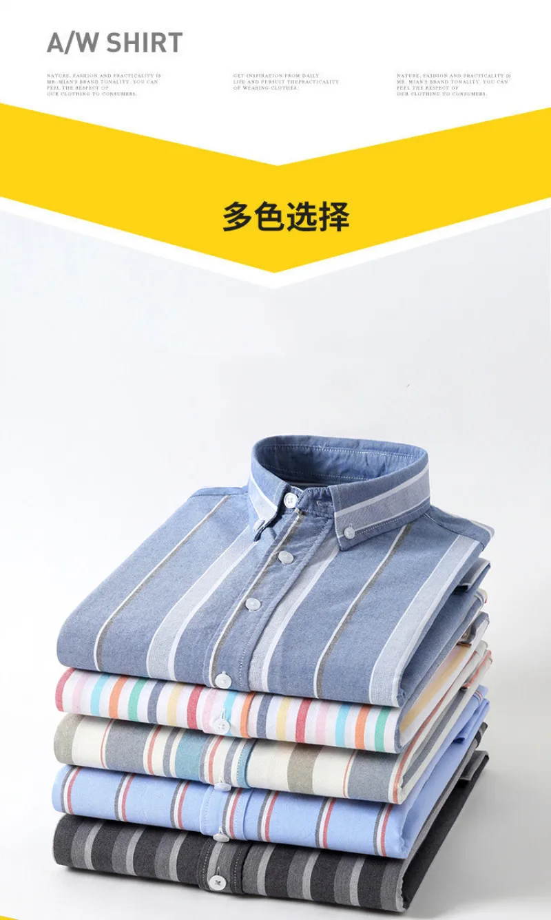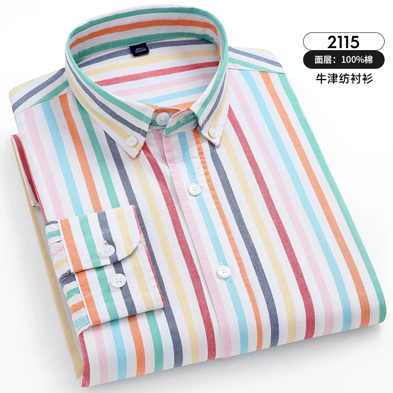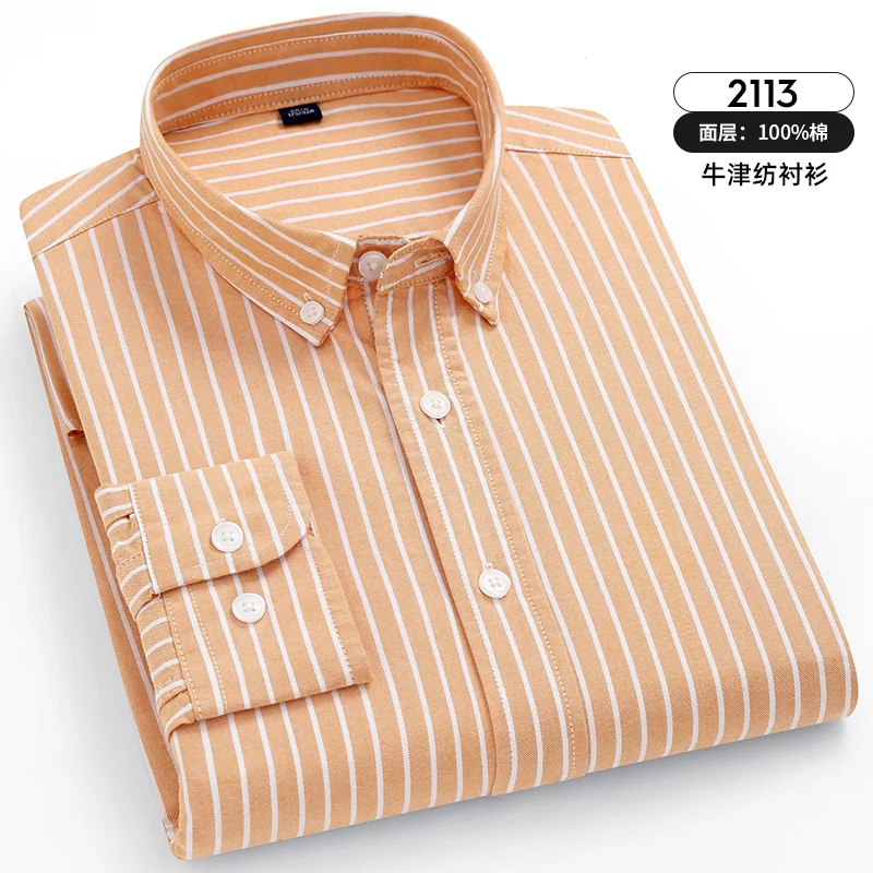 Мужская рубашка в полоску, из чистого хлопка, с длинным рукавом, деловая, повседневная, на пуговицах, 2021