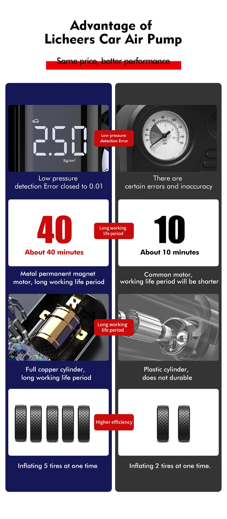 Есть ли у вас следующие проблемы... Давление в шинах автомобиля теряется, когда проходит время? Давление в шинах зависит от температуры? Требуется дополнительное давление для вашего велосипеда или мотоцикла? Этот проводной портативный насос поможет вам! Элегантная матовая текстура, улучшенное устойчивое к пятнам покрытие позволяет легко чистить.