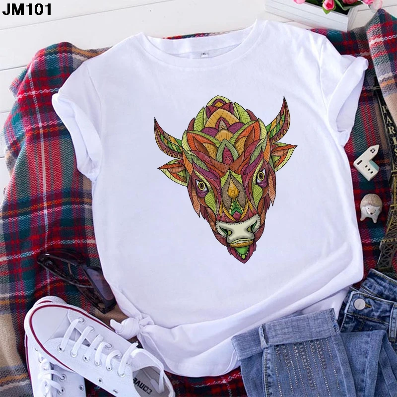 Футболка женская с принтом в виде животных, летняя, с круглым вырез...