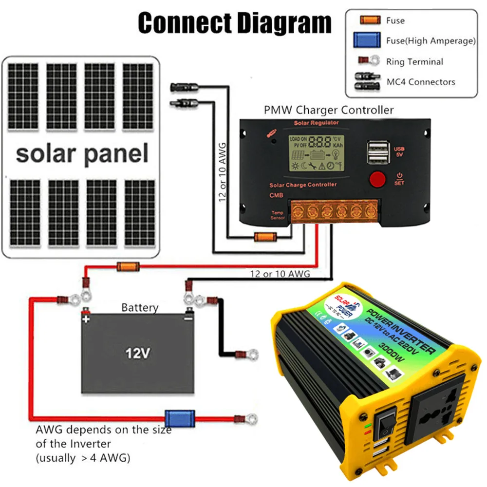 [То, что вы получаете] 3000 Вт автомобильный инвертор, руководство пользователя, 2 x зажим батареи, 1 x разъем для автомобильной сигареты и 100% обслуживание клиентов.