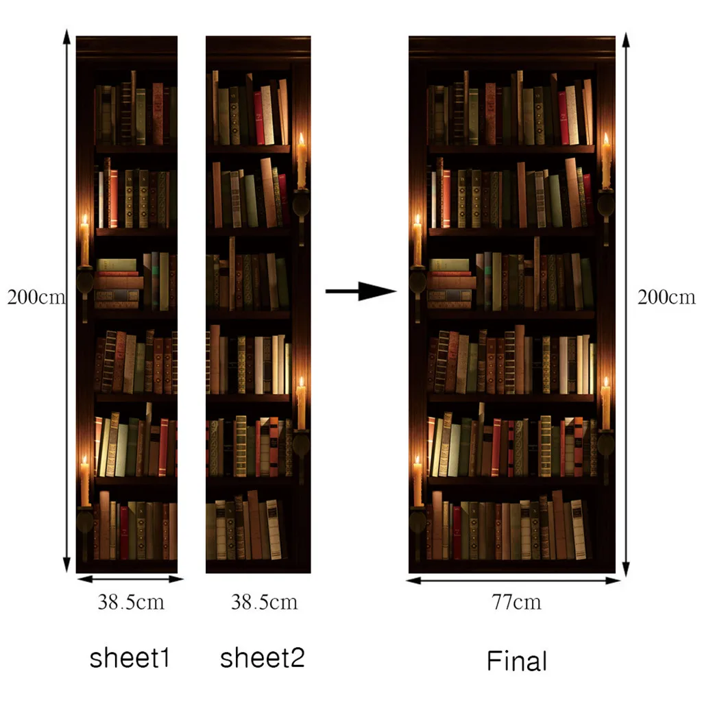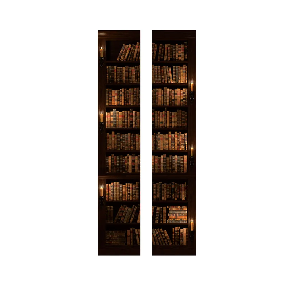 Пвх дверная наклейка, винтажная деревянная книжная полка, барная стойка, настенные наклейки, 3d Декор, пейзаж, художественные обои на дверь, настенные наклейки