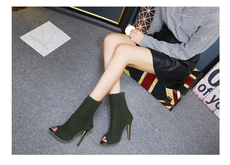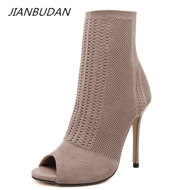 Женские ботинки JIANBUDAN, на высоком каблуке, с открытым носком, в...