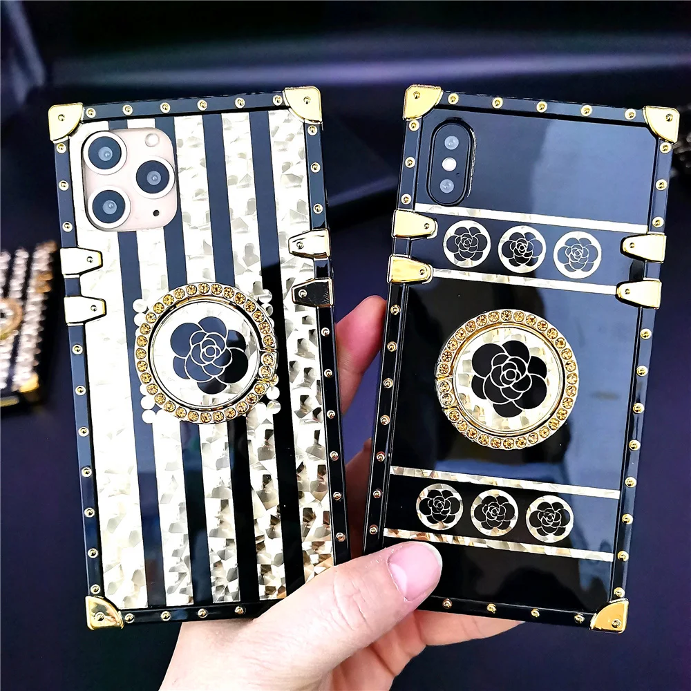 Роскошный блестящий чехол с золотым и розовым цветком, Мягкий Квадратный чехол для телефона Samsung Galaxy S22 Ultra S20 Plus S21 FE Note 20 Ultra 9 S10 S9