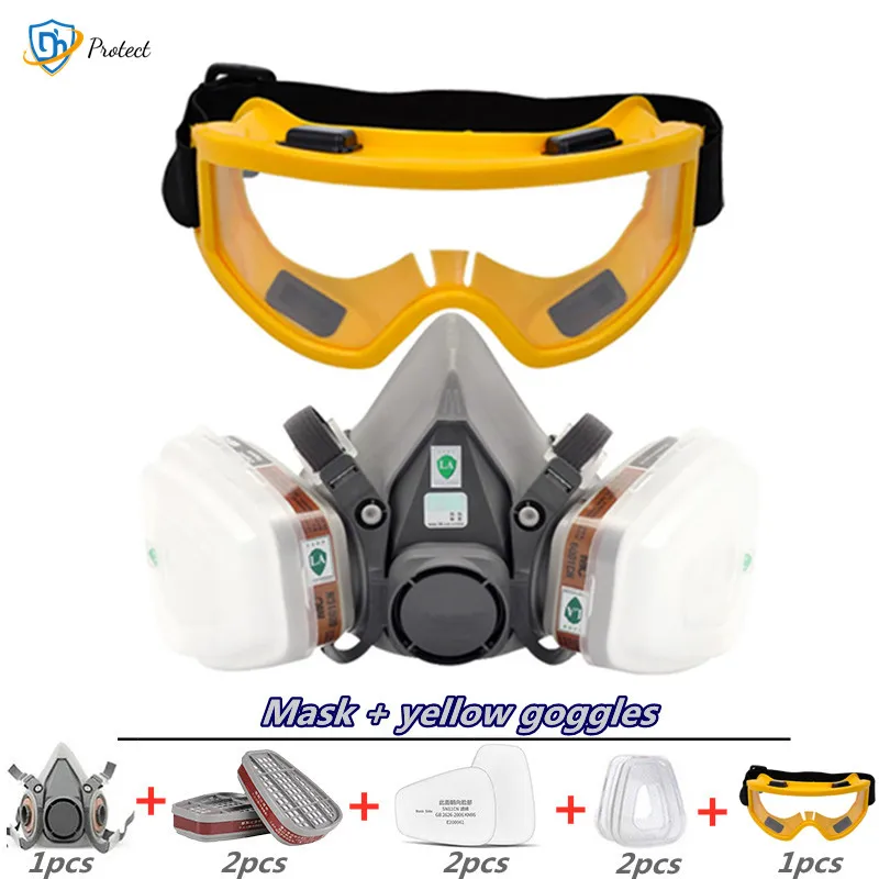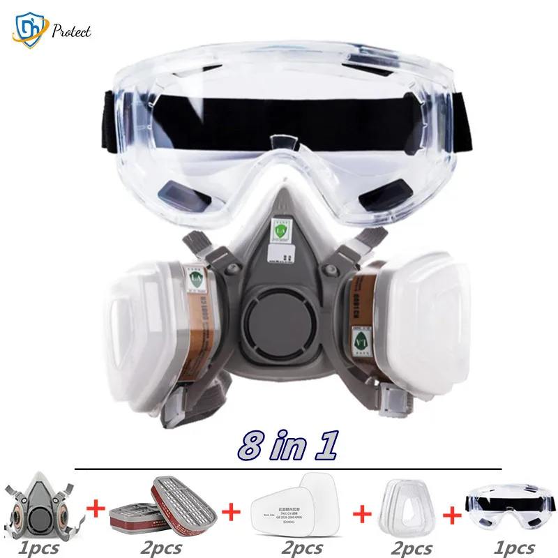Противогаз 8 в 1, 6200, с защитными очками, респиратор на половину лица для покраски и распыления, полировка, безопасность работы