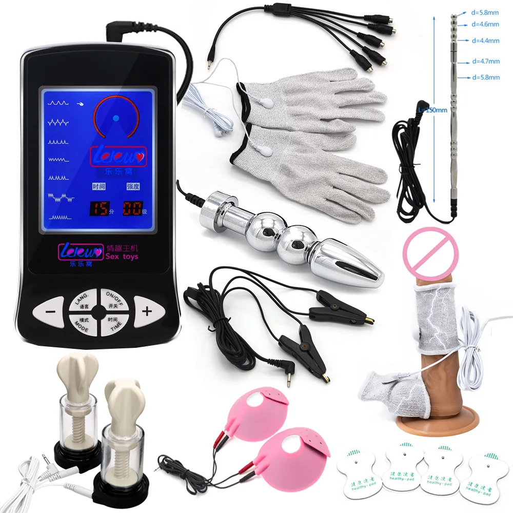 Электрический шок импульсный анальный шарик Анальная пробка Уретра стимуляция стержень SM пенис кольцо для соска присоски зажим массажные перчатки/коврик комплект секс-игрушек
