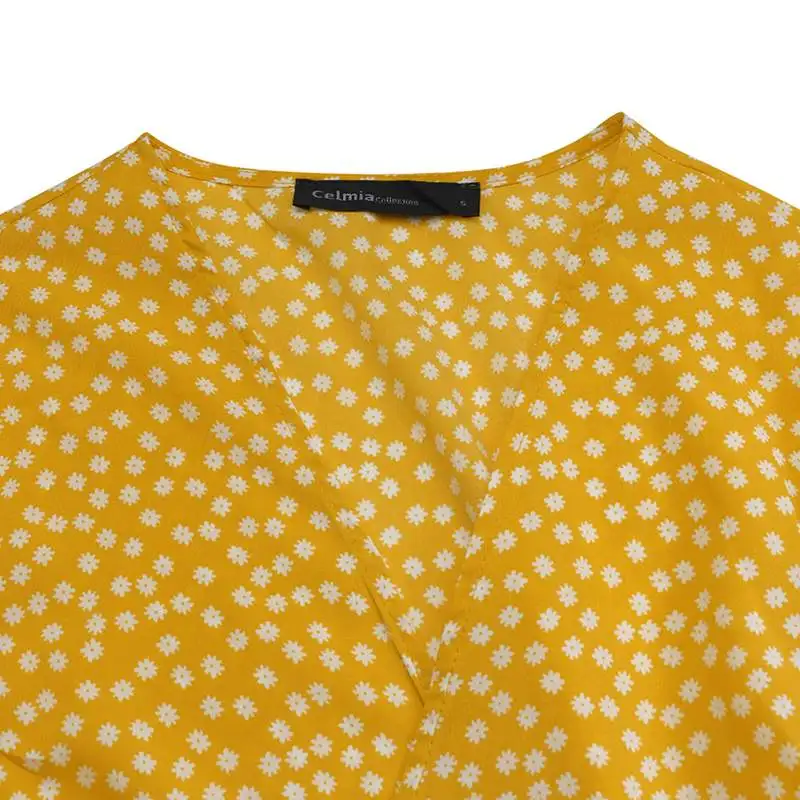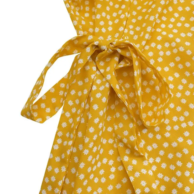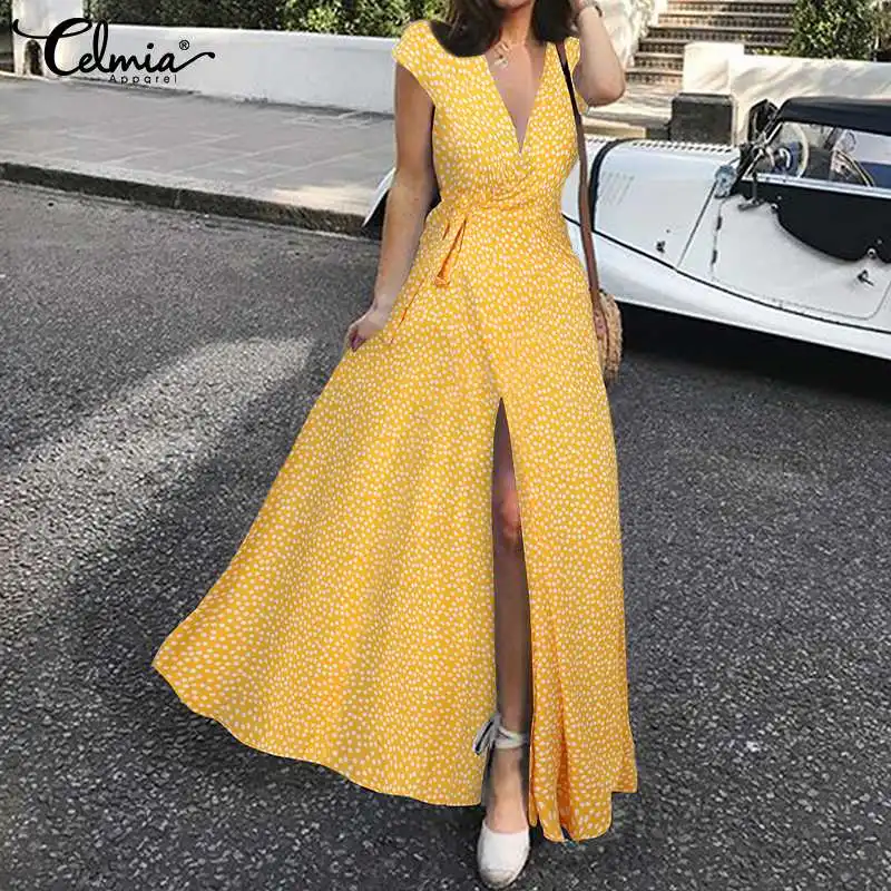 Женское богемное длинное платье Celmia, сарафан с цветочным принтом и разрезом, с V-образным вырезом и коротким рукавом, Бандажное, лето 2021