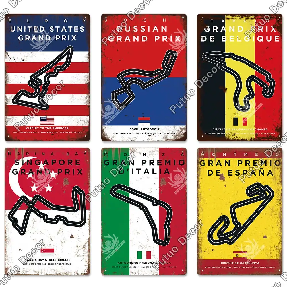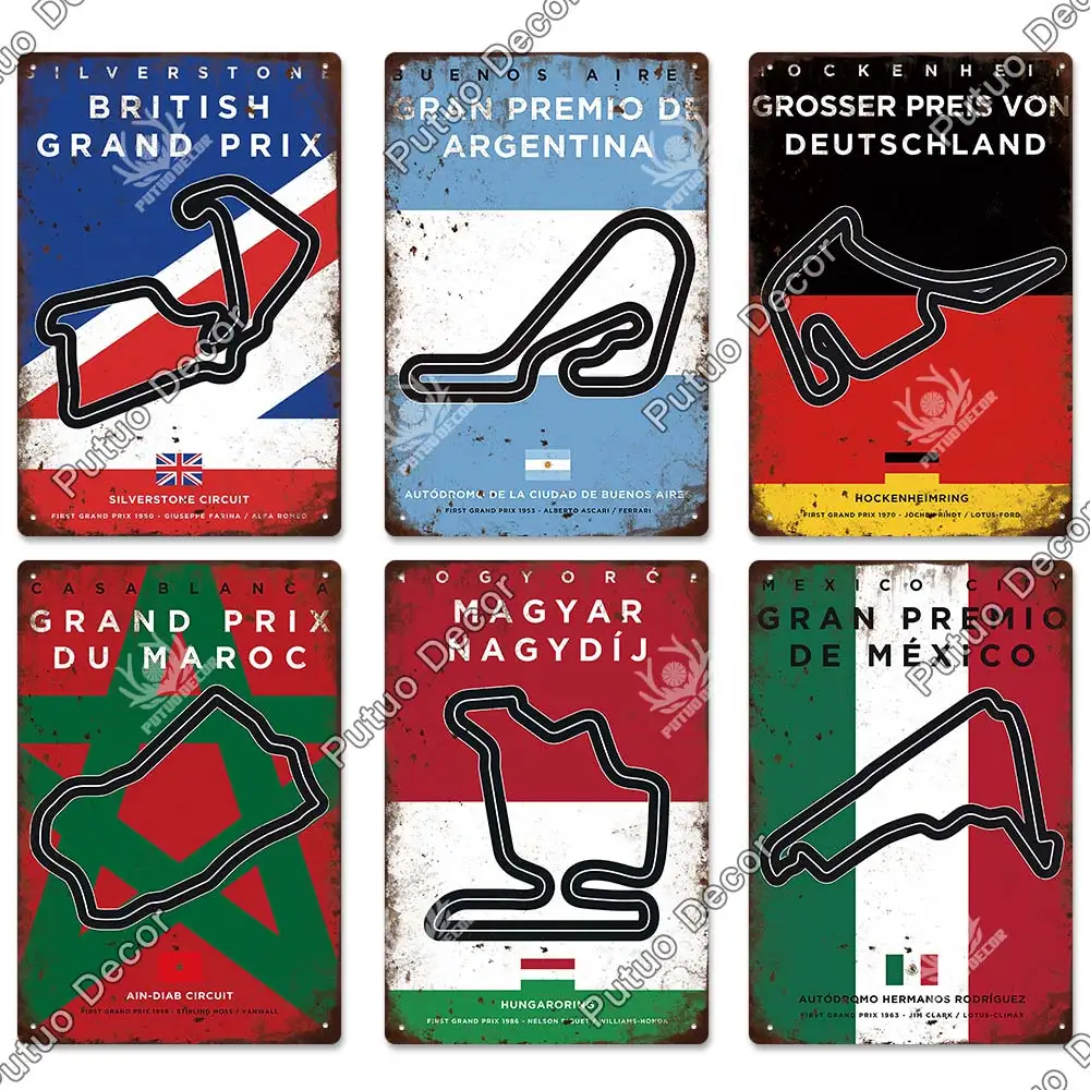 Винтажный металлический постер Putuo Decor F1 для соревнований, мет...