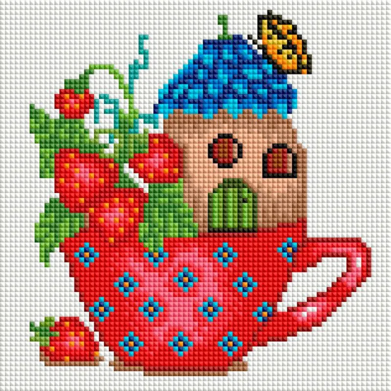 "Домик в чашке" Алмазная мозаика на подрамнике 20*20. Белоснежка. 568-ST-S